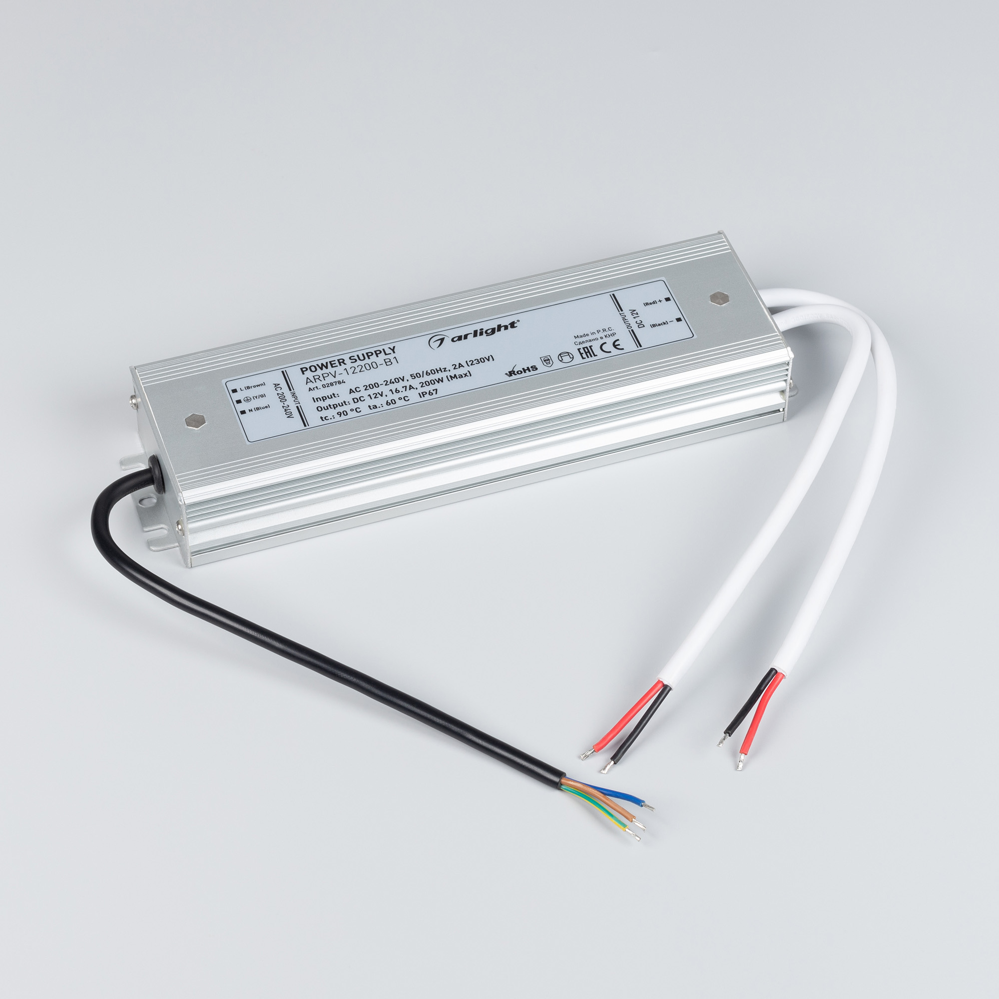 Источник напряжения с гальванической развязкой для светодиодных изделий. Входное напряжение 200-240 VAC. Выходные параметры: 12 В, 16,7 А, 200 Вт. Герметичный алюминиевый корпус IP 67. Рабочая температура -30…+50C⁰. Габаритные размеры длина 235 мм, ширина 67 мм, высота 34 мм. Совместим с диммерами с частотой ШИМ более 5кГц. Гарантийный срок 3 года.