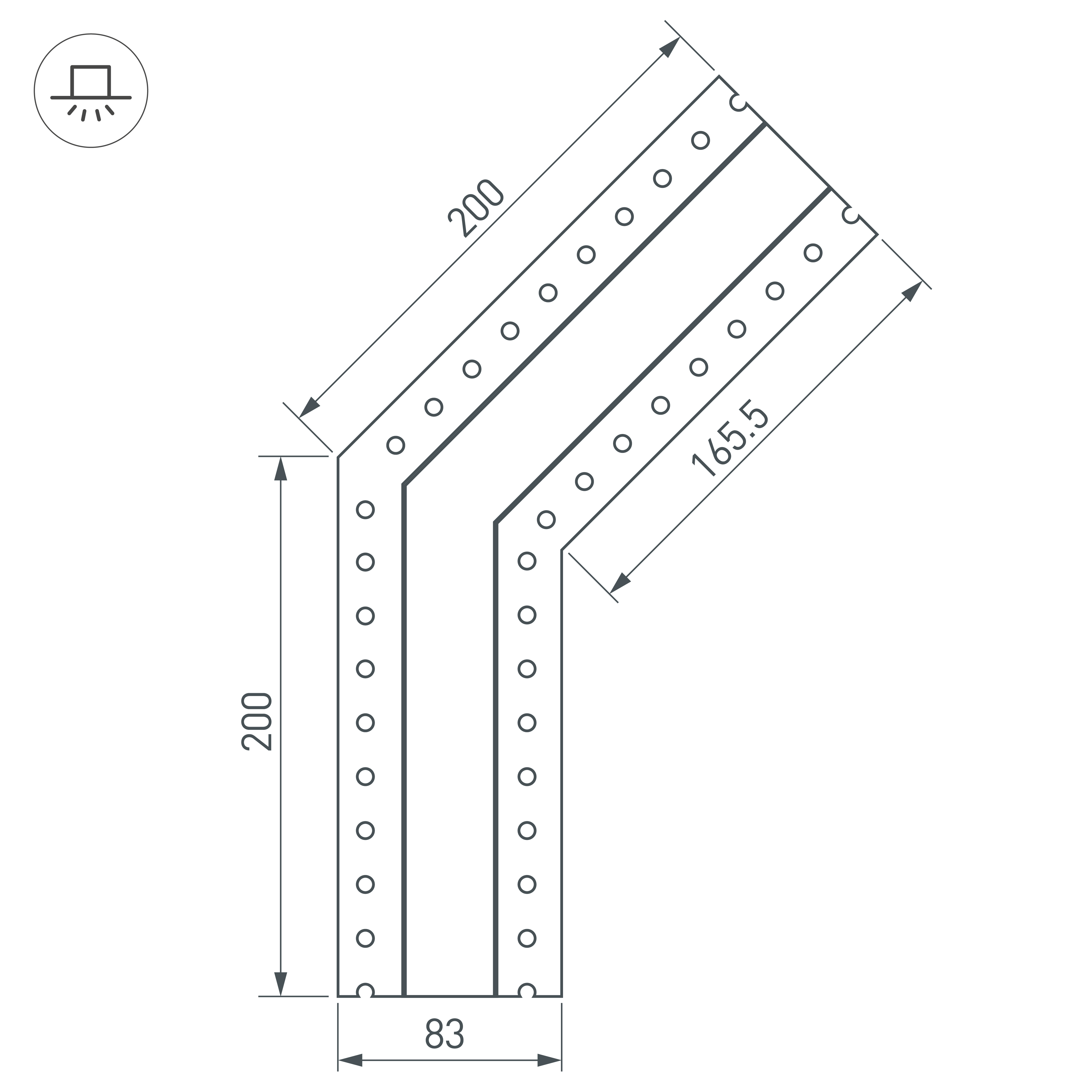 Угол в сборе со скрытым фланцем под строительную отделку для соединения двух профилей SL-LINIA32-FANTOM под углом 135° в одной плоскости в комплекте с матовым экраном и соединителями. Экран образует линию на плоскости. Применятся при изготовлении светильников сложной геометрии. Длина внешней стороны угла 200мм. Цена за комплект.