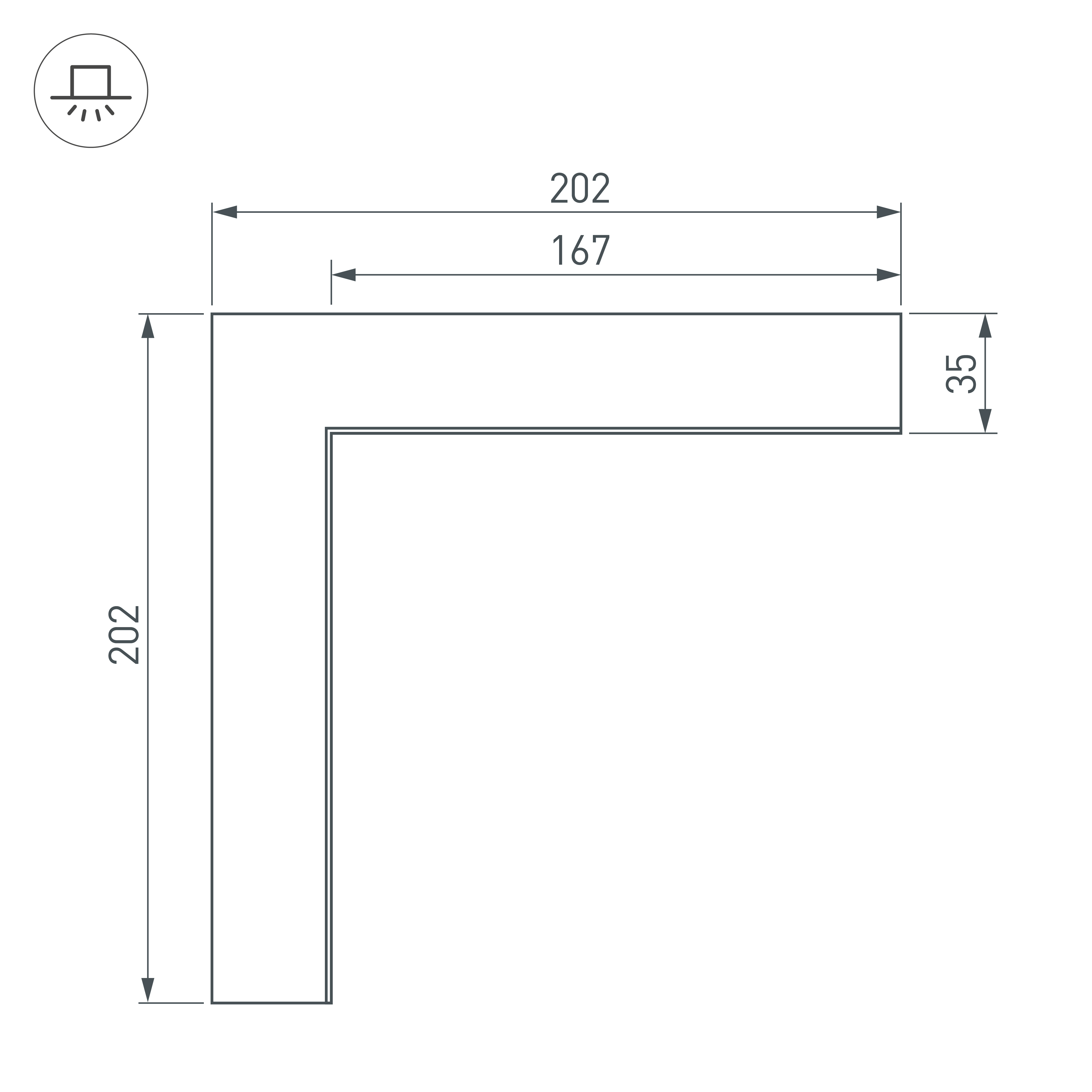 Внутренний прямой угол в сборе с накладным фланцем для соединения двух профилей SL-LINIA65-F под прямым углом 90° в разных плоскостях в комплекте с матовым экраном и соединителями. Экран образует линию внутри угла. Применятся при изготовлении светильников сложной геометрии. Длина внешней стороны угла 202мм. Цена за комплект.
