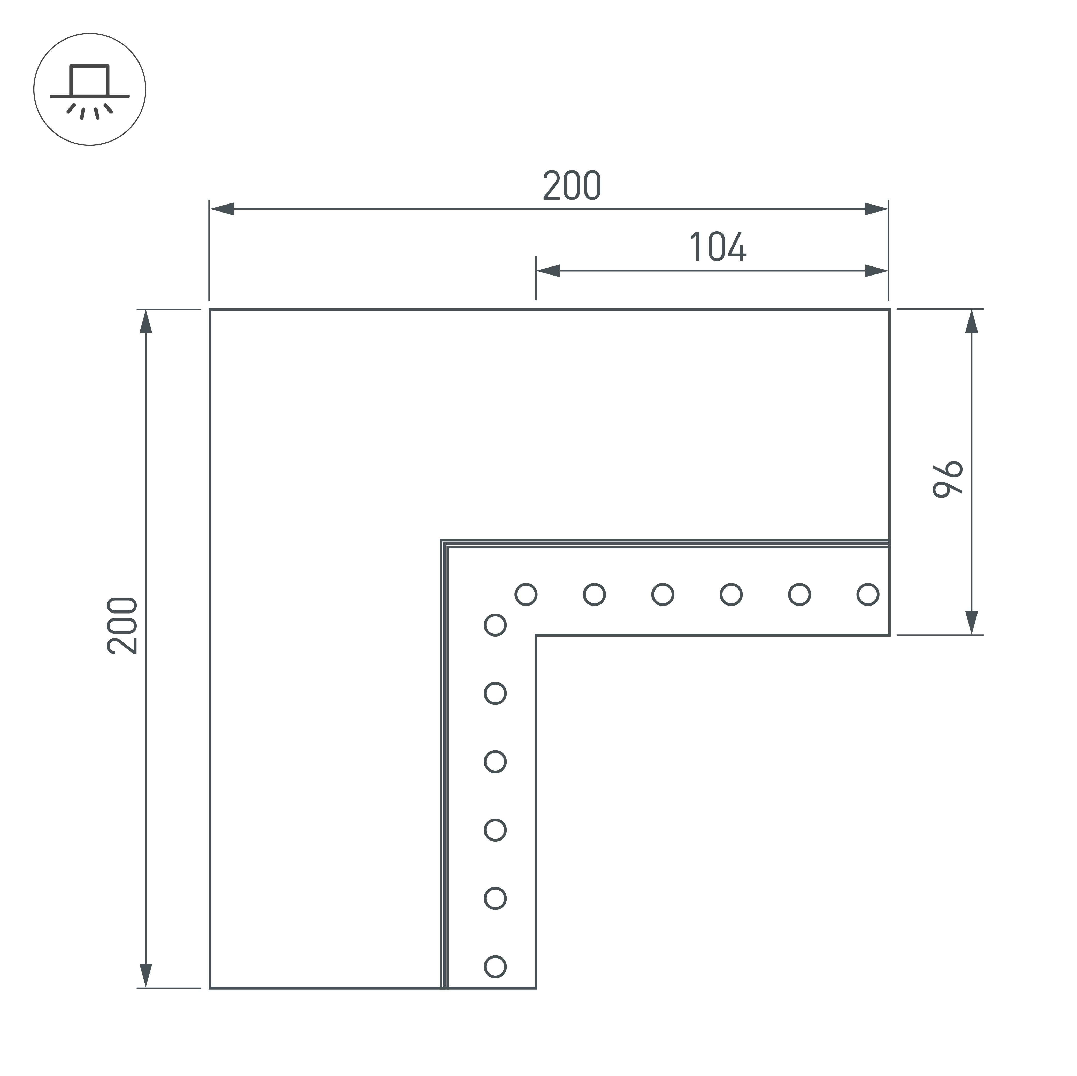 Длина внешней стороны угла 200мм. Цена за комплект.