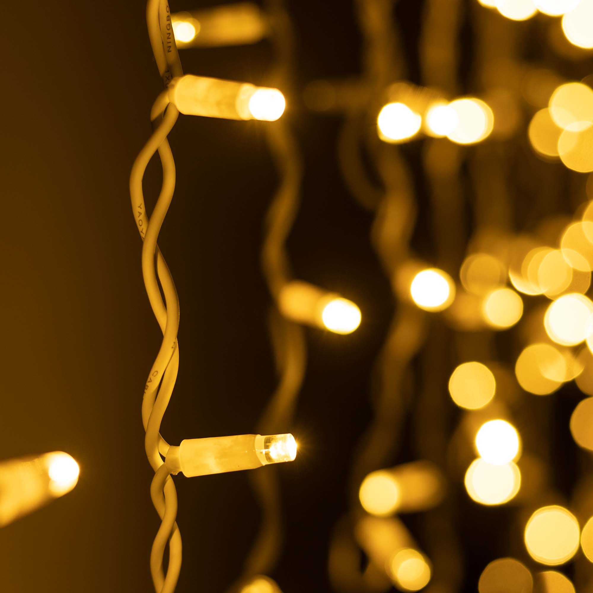 Универсальная светодиодная гирлянда "БАХРОМА" серии Pro идеально подходит для украшения и создания праздничной атмосферы как внутри помещений, так и снаружи (степень пылевлагозащиты IP65 позволяет размещать гирлянду на улице под навесом). Имея размеры 4000 x 600 мм, она может использоваться для оформления средних и больших площадей. Универсальные соединительные разъемы позволяют наращивать длину до 50 м без использования дополнительных аксессуаров. Прозрачная вогнутая линза и эффект мерцания редких точек обеспечивают яркое и динамичное освещение, выделяя украшаемые объекты. Тёплый белый свет помогает создать необходимую атмосферу для декоративного объекта. Провод изготовлен из каучука и окрашен в белый цвет. Аксессуары для подключения гирлянды к сети приобретаются отдельно.