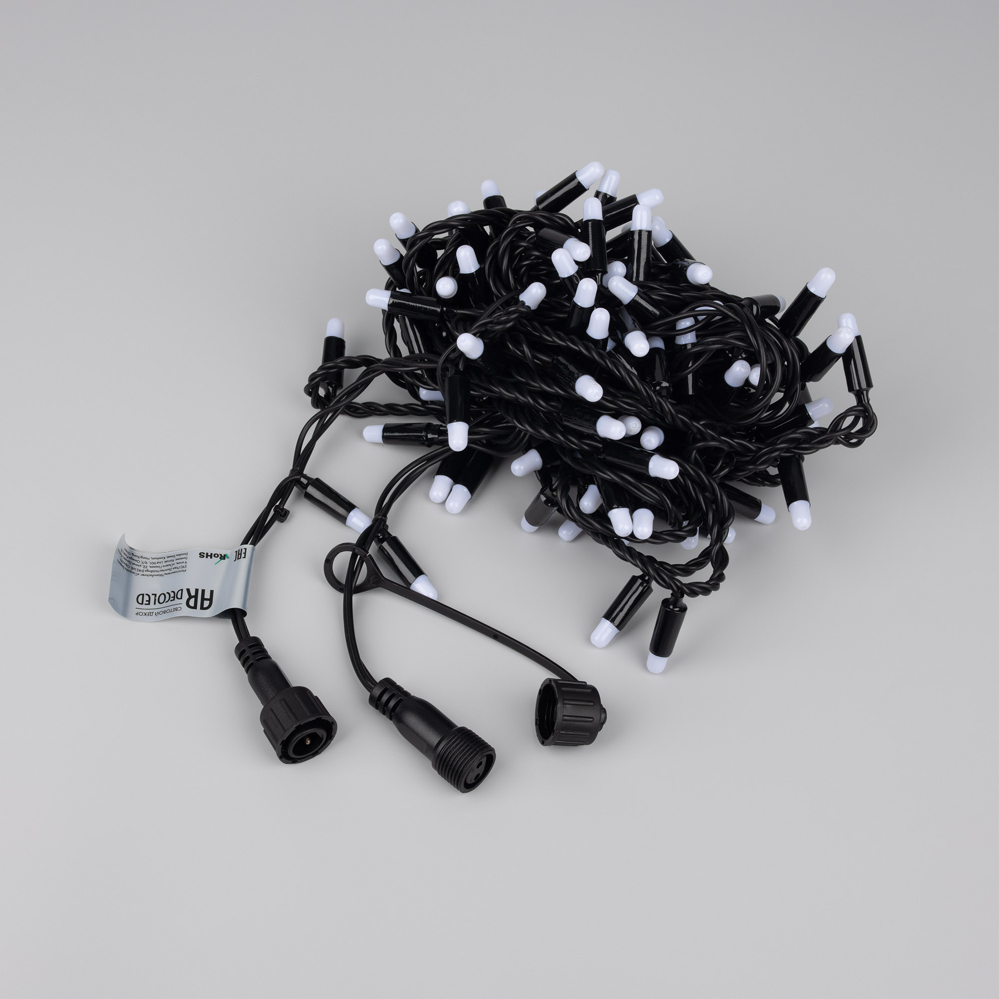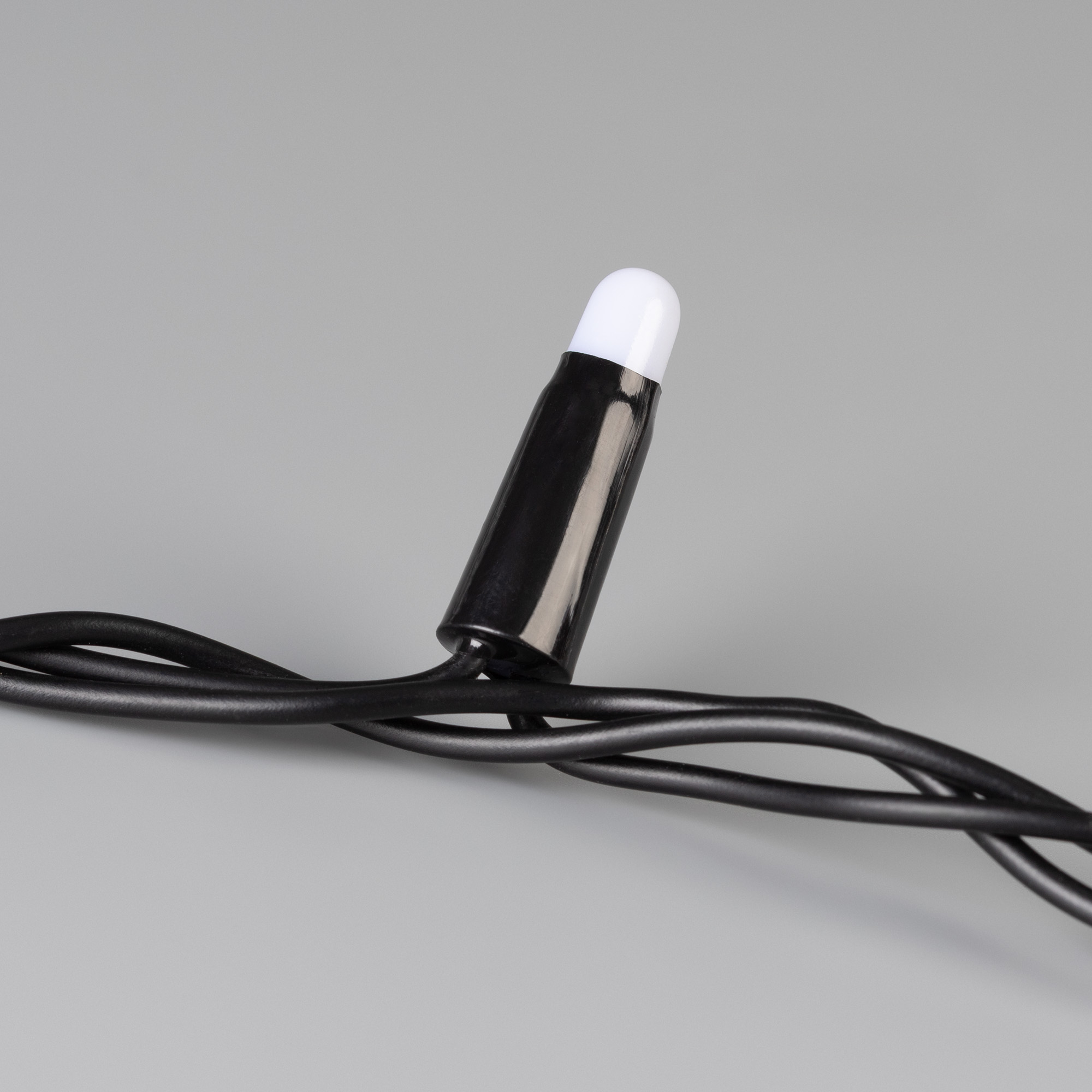 Универсальная светодиодная гирлянда "НИТЬ" серии Classic, предназначенная для декорирования и создания праздничного настроения как внутри помещений, так и снаружи (степень пылевлагозащиты IP65 позволяет размещать гирлянду на улице под навесом). Имея длину 10000 мм, она может использоваться для оформления средних и больших площадей. Универсальные соединительные разъемы позволяют наращивать длину до 50 м без использования дополнительных аксессуаров. Выпуклая молочно-белая линза и эффект мерцания редких точек обеспечивают мягкое и динамичное освещение украшаемых объектов. Теплый белый свет, в сочетании с холодным белым, помогает создать необходимую атмосферу для декоративного объекта. Провод изготовлен из ПВХ и окрашен в чёрный цвет. Аксессуар для подключения гирлянды к сети приобретается отдельно.