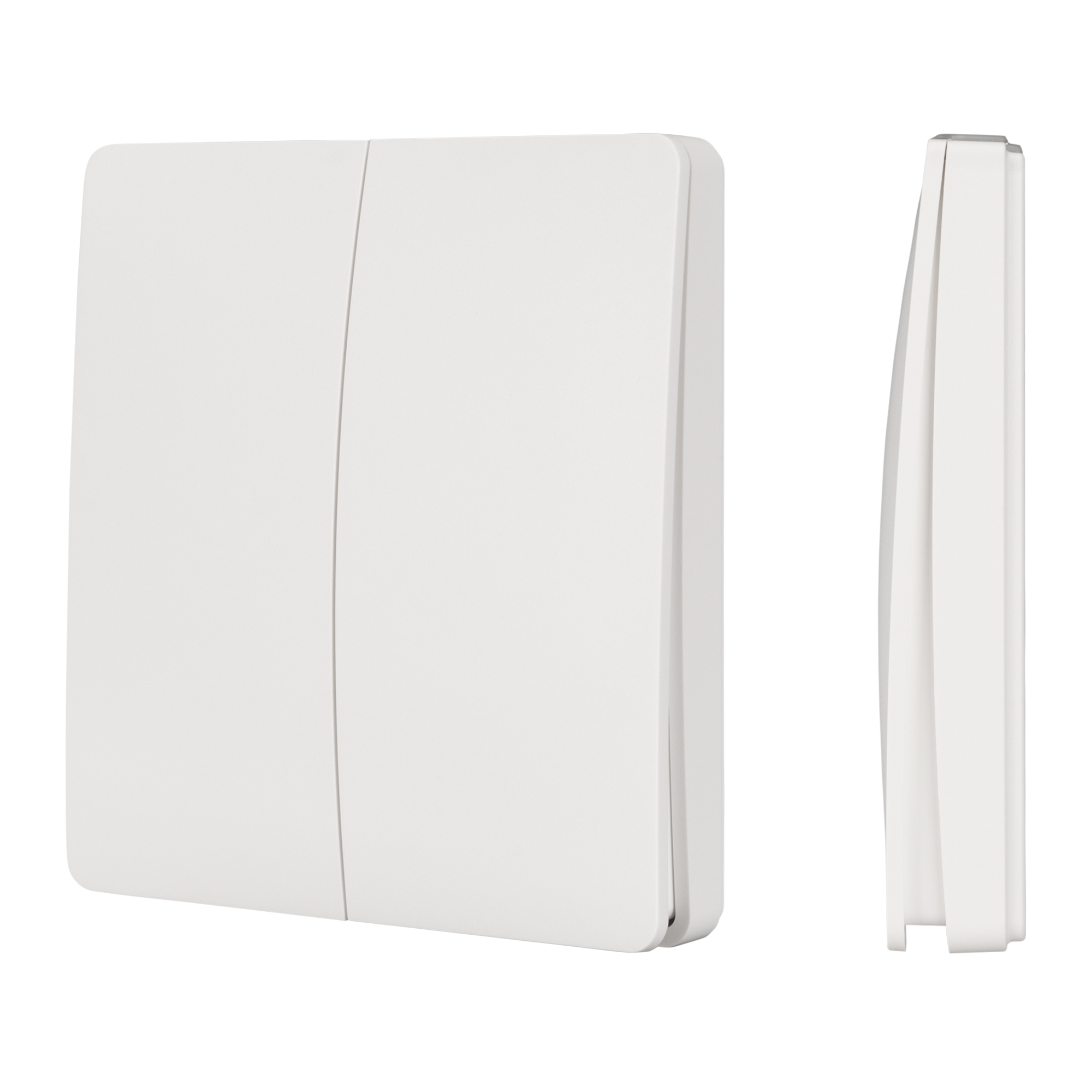 Накладная кнопочная панель белого цвета, изготовленная из пластика. Предназначена для управления одноцветными источниками света (ШИМ) с помощью кнопок. Основные выполняемые функции: включение и выключение света, регулировка яркости. Удобное и точное управление с помощью эргономичных кнопок. Изделие применяется в качестве двухзонного пульта дистанционного управления диммерами и релейными модули серий TUYA-***-WF и TY-***-WF, поддерживающими управление по радиоканалу 433MHz. Не требует питания, имеет встроенный кинетический источник питания. Габариты панели 86х86х14 мм, корпус выполнен из пластика. Устройство устанавливается на любую поверхность, к которой возможно прикрутить монтажную базу панели.