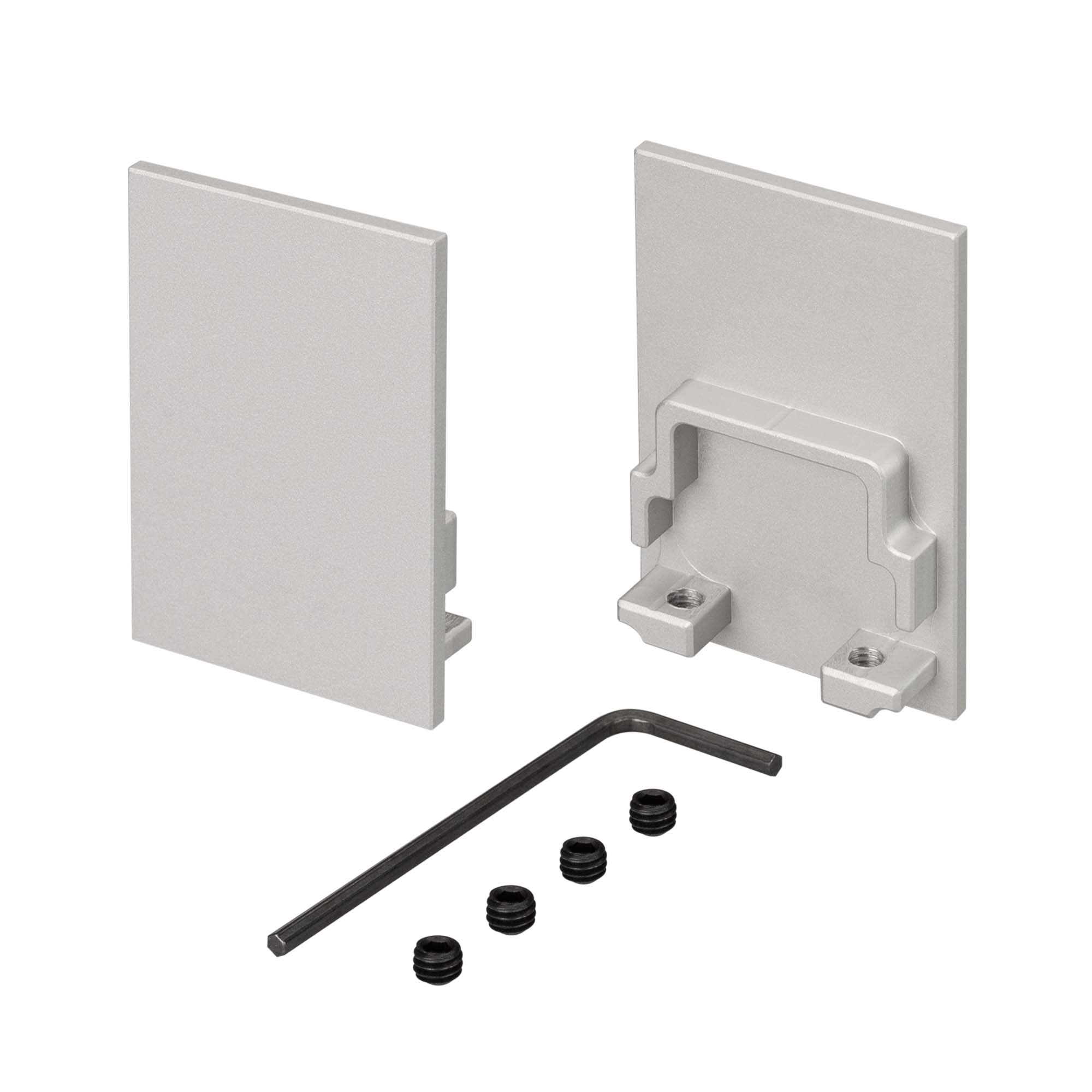 Металлические глухие заглушки (2 шт.) для профиля SL-COMFORT-3551. Придают законченный вид светильнику, а также защищают светодиодную ленту от внешних факторов (грязи, пыли и прочего). Отверстие в заглушке позволяет вывести кабель питания светодиодной ленты.