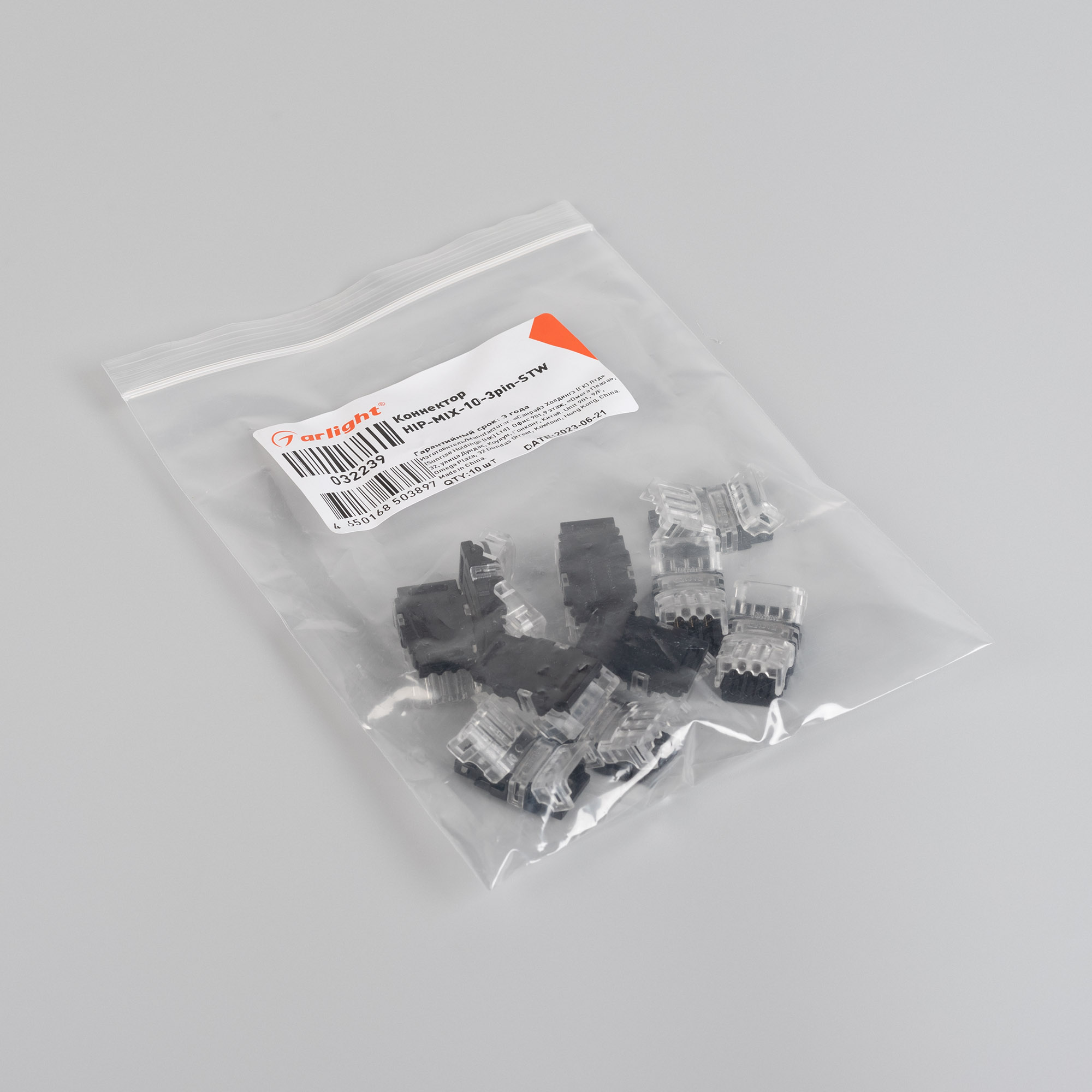 Одиночный коннектор (без провода) для подключения питания к открытым лентам MIX шириной 10 мм. Очистка провода питания (0,34-0,75 мм2) от изоляции не требуется. Материал - прозрачный пластик. Максимальный допустимый ток 3 А, напряжение 3-24 В, степень защиты IP33. Цена за 1 шт.
