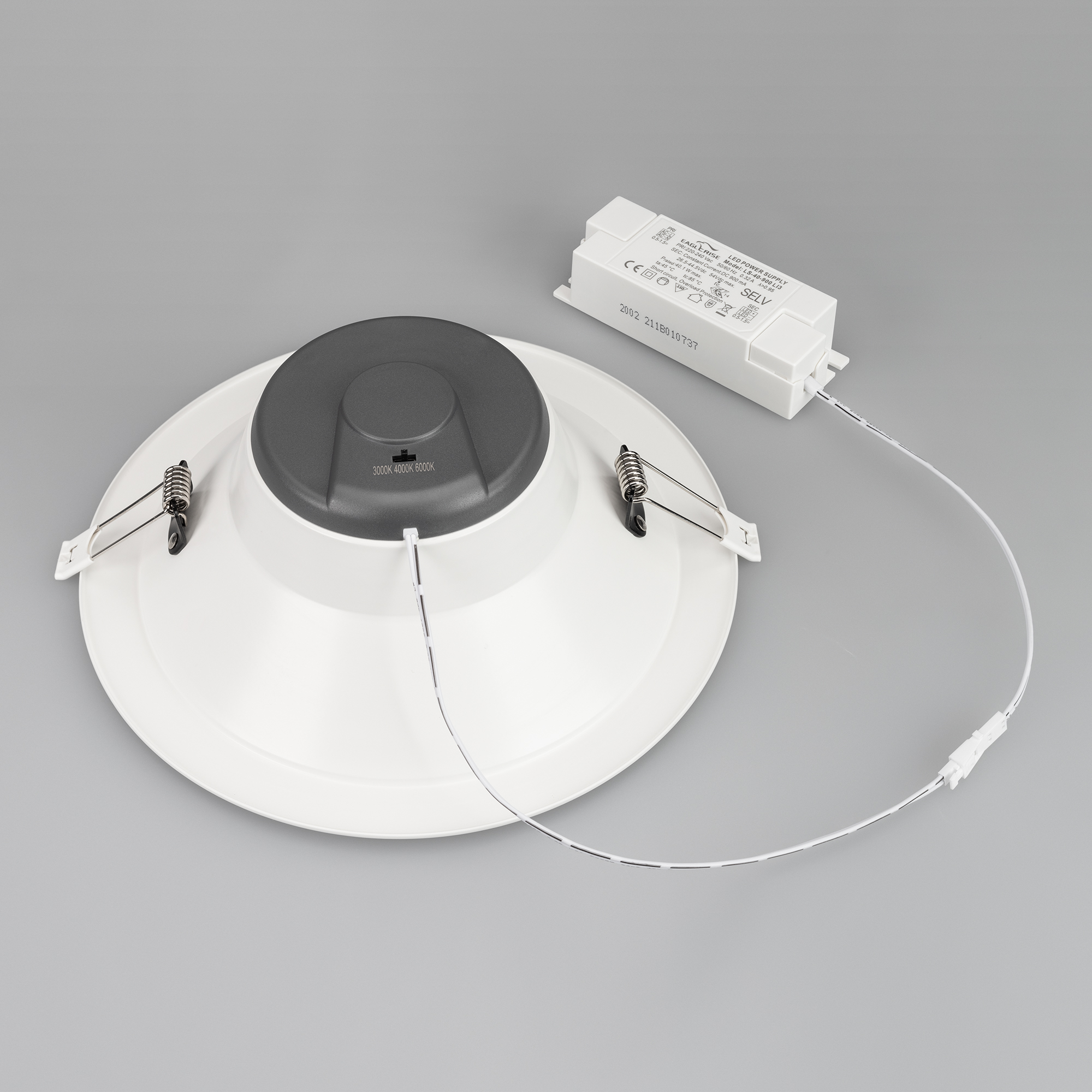 Встраиваемый светильник IM-STORM-R230-35W Day4000-MIX (WH, 80 deg, 230V) мощностью 35 Вт с изменяемой цветовой температурой 3000/4000/6000 К. Выбор цвета свечения происходит с помощью удобного переключателя на корпусе светильника. Индекс цветопередачи CRI>80 обеспечивает точное восприятие цветовых оттенков. Лаконичный алюминиевый корпус размером 232×83 мм будет гармонично смотреться в любом интерьере. Светильник с высокой светоотдачей, световым потоком 3700 лм и углом излучения 80° обеспечивает равномерное освещение без мерцания и видимости точек светодиодов. Светильник встраивается в установочное отверстие Ø195–210 мм с помощью удобных креплений.