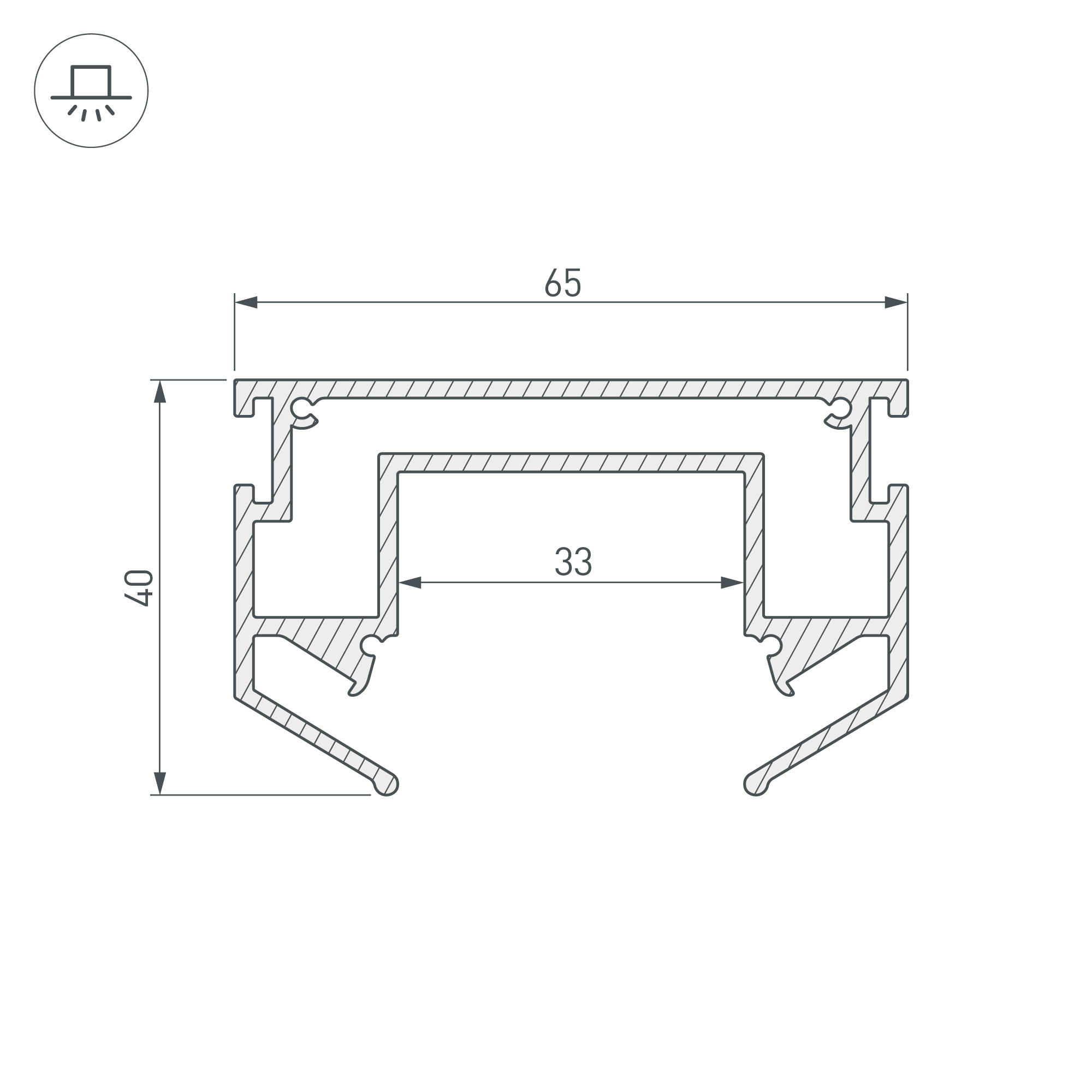 Алюминиевый профиль-держатель для установки в натяжной потолок накладного трека LGD-4TR. Габаритные размеры профиля составляют 2000 мм в длину, 40 мм в ширину и 65 мм в высоту. Заглушки и другие аксессуары приобретаются отдельно. Цена указана за 1 шт. Монтажные кронштейны в комплект не входят.
