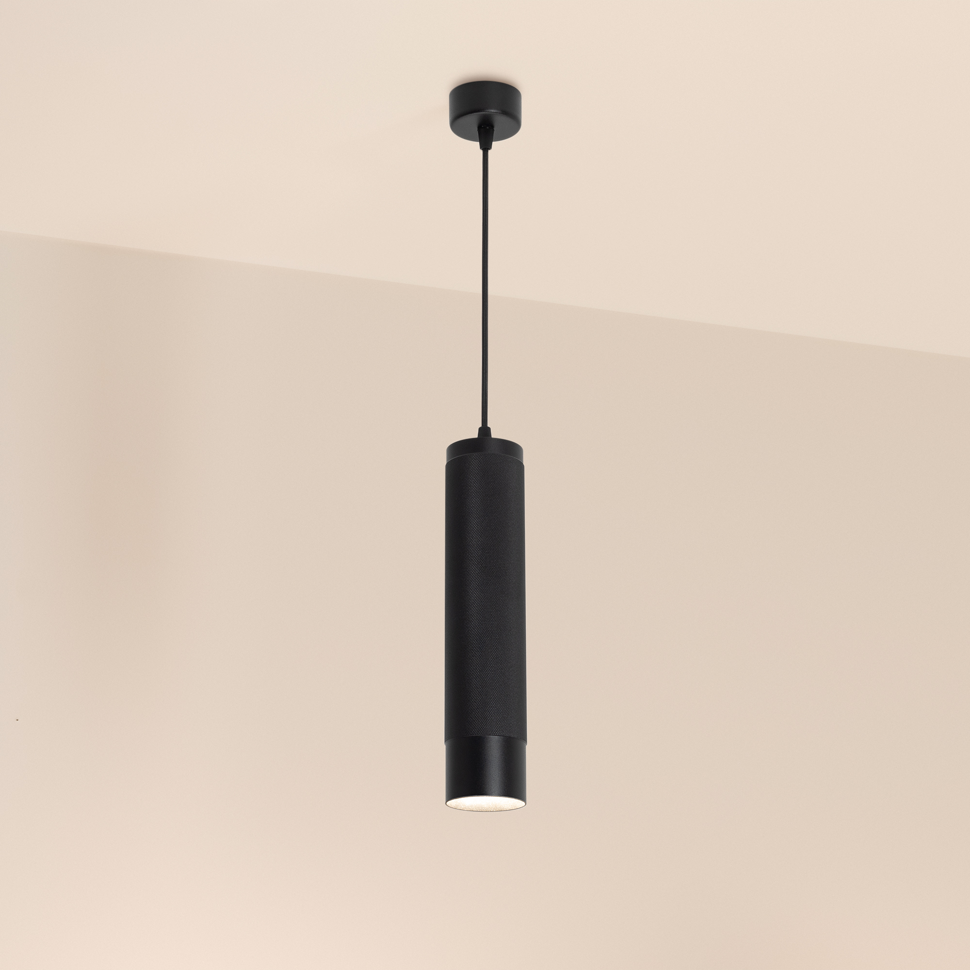 Подвесной светильник. Мощность 13 Вт, св. поток 732 лм, 57 лм/Вт, теплый 3000 K, CRI>90, угол 50°, напряжение питания 230 В. Черный круглый корпус из алюминия, рефлектор PC, степень защиты IP20. Размер: диаметр 70 мм, высота 300 мм, длина подвеса 1500 мм, размер чаши: диаметр 65 мм, высота 30 мм. Монтаж подвесной. Драйвер 24-42 В, 300 мА, пульсация <1%.