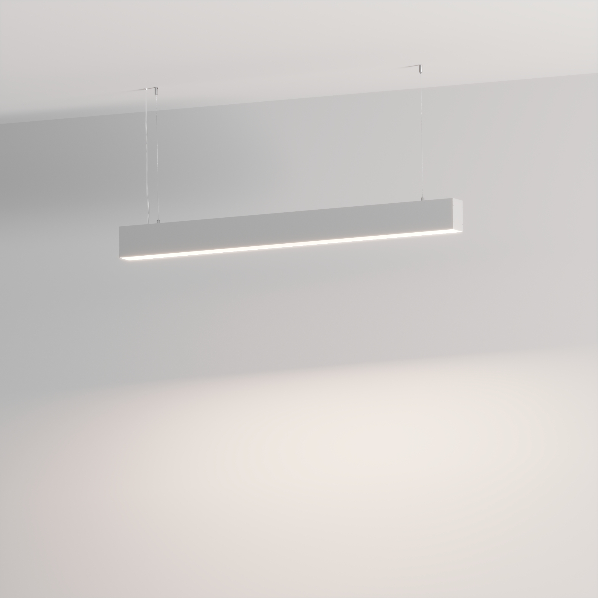 Подвесной профиль из анодированного алюминия с отсеком для блока питания (46х44 мм) для основного освещения и контурной подсветки. Возможность установки экрана на двух уровнях, вровень с профилем и утоплено, позволяет получить разные световые эффекты.