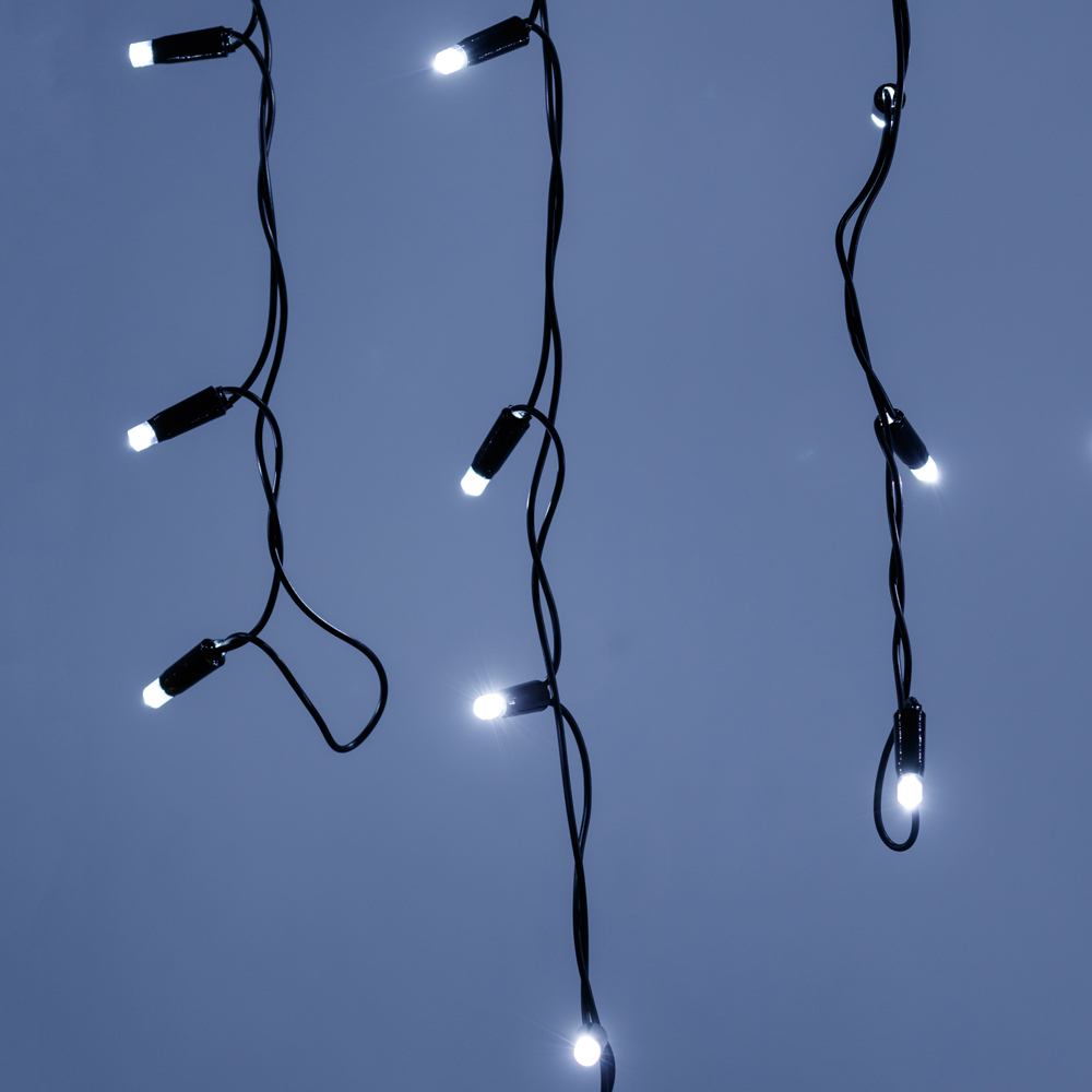 Универсальная светодиодная гирлянда "БАХРОМА" серии Pro отлично подходит для украшения и создания праздничной атмосферы как внутри помещений, так и снаружи (степень пылевлагозащиты IP65 позволяет размещать гирлянду на улице под навесом). Имея размеры 4000 x 600 мм, она может использоваться для оформления средних и больших площадей. Универсальные соединительные разъемы позволяют наращивать длину до 50 м без использования дополнительных аксессуаров. Выпуклая молочно-белая линза и эффект непрерывного свечения обеспечивают мягкое, спокойное и равномерное освещение украшаемых объектов. Холодный белый свет помогает создать необходимую атмосферу для декоративного объекта. Провод изготовлен из каучука и окрашен в чёрный цвет. Аксессуары для подключения гирлянды к сети приобретаются отдельно.