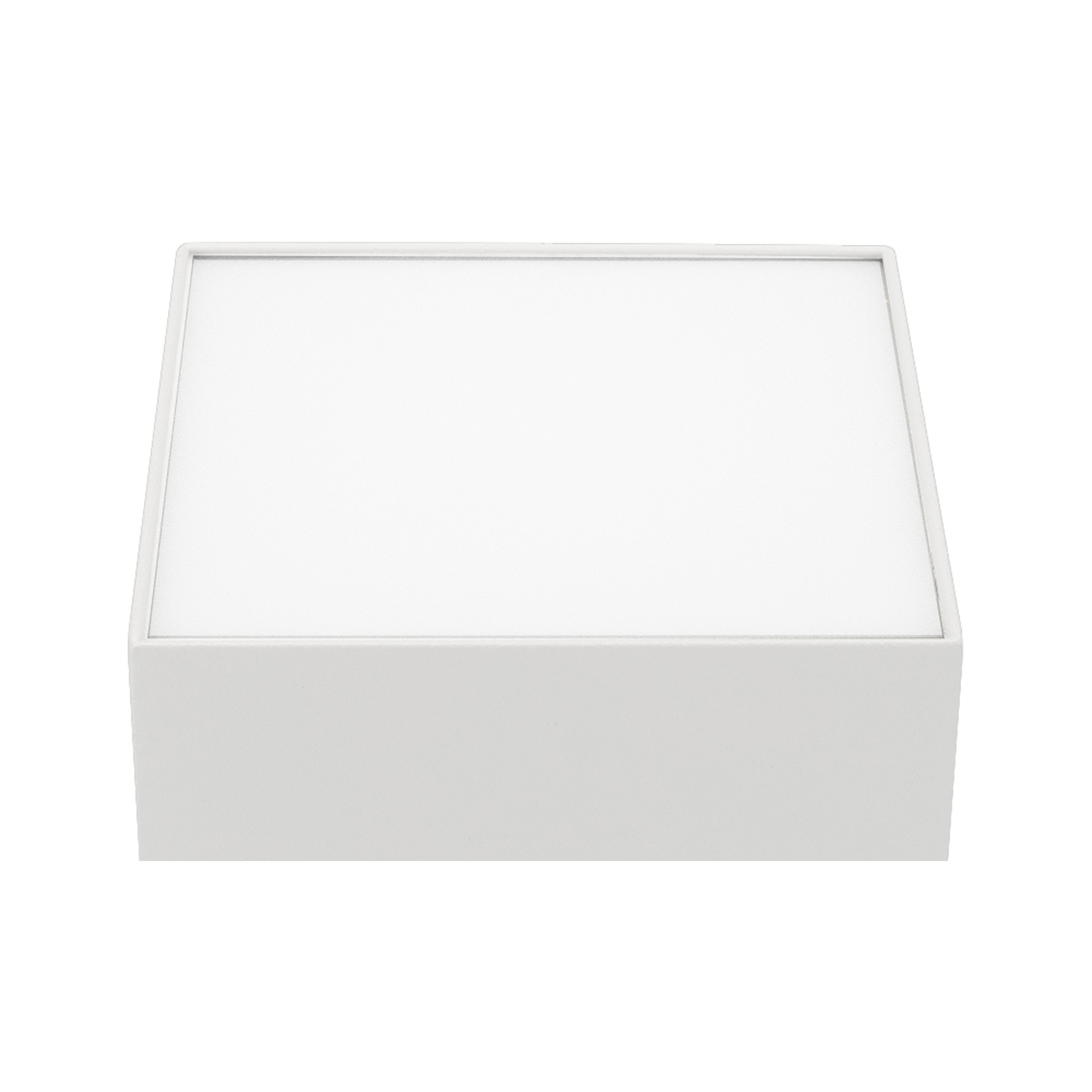 Поставка под заказ от 50 шт Накладной светильник. Мощность 16 Вт, св. поток 825-1000 лм, 63 лм/Вт, теплый 3000 K, CRI>90, угол 120°, напряжение питания 230 В. Белый квадратный корпус из алюминия, экран PC, степень защиты IP40. Размер: длина 175 мм, ширина 175 мм, высота 59 мм. Монтаж накладной. Драйвер 26-40 В, 400 мА, пульсация <5%.