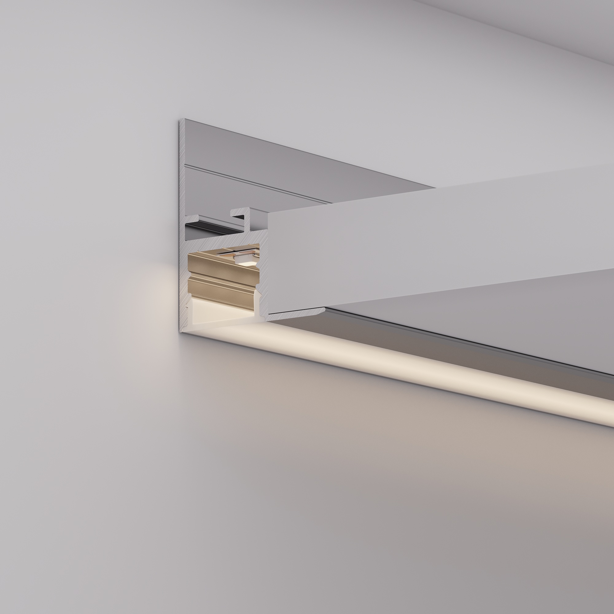 Встраиваемый профиль с накладным фланцем из анодированного алюминия для контурной подсветки ниш, карнизов и углов.