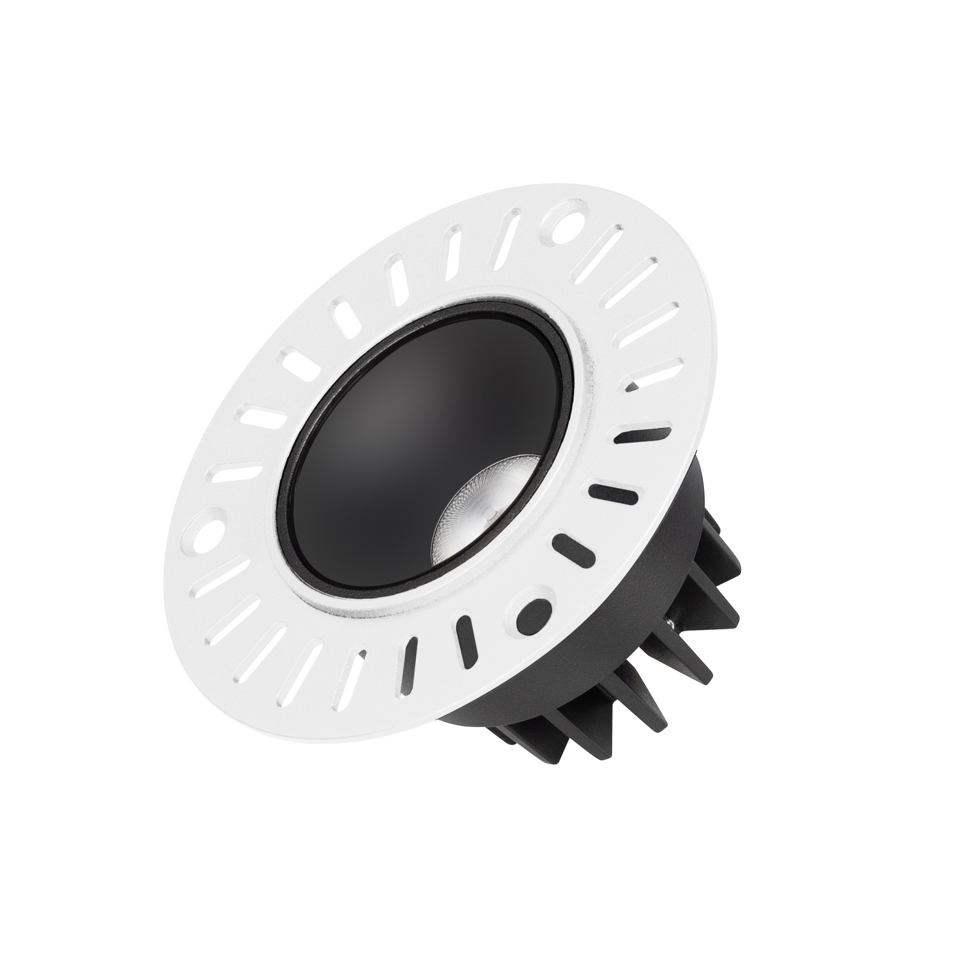 Встраиваемый безрамочный светильник под шпаклевку мощностью 6.3 Вт. Предназначен для освещения жилых, офисных, торговых и других помещений. Теплый белый цвет свечения (3000 К) и световой поток 455 лм. Заглубленная оптика ограничивает боковое излучение, тем самым исключая появление ослепляющего эффекта. Высокий индекс цветопередачи (CRI>90) и узкий угол излучения 40° для локального освещения. Светильник встраивается в установочное отверстие диаметром 65 мм. Драйвер в комплекте для подключения к сети 230 В.