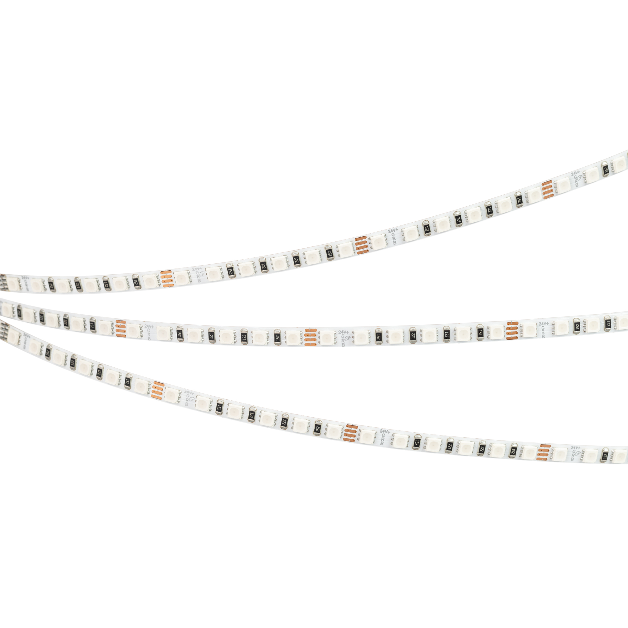Мультицветная светодиодная лента RT серии G120 шириной 5 мм, мощностью 7.5 Вт/м. цвет свечения RGB. Напряжение питания 24 В. Светодиоды SMD 3838 (120 шт/м). Минимальный отрезок 50 мм (6 светодиодов). Трехканальная лента с 4 проводами для подключения, управляется RGB-контроллером. Применяется для создания яркой цветной декоративной подсветки элементов интерьера, ниш, рекламных конструкций, витрин, зон отдыха. Обязательна установка на профиль.
