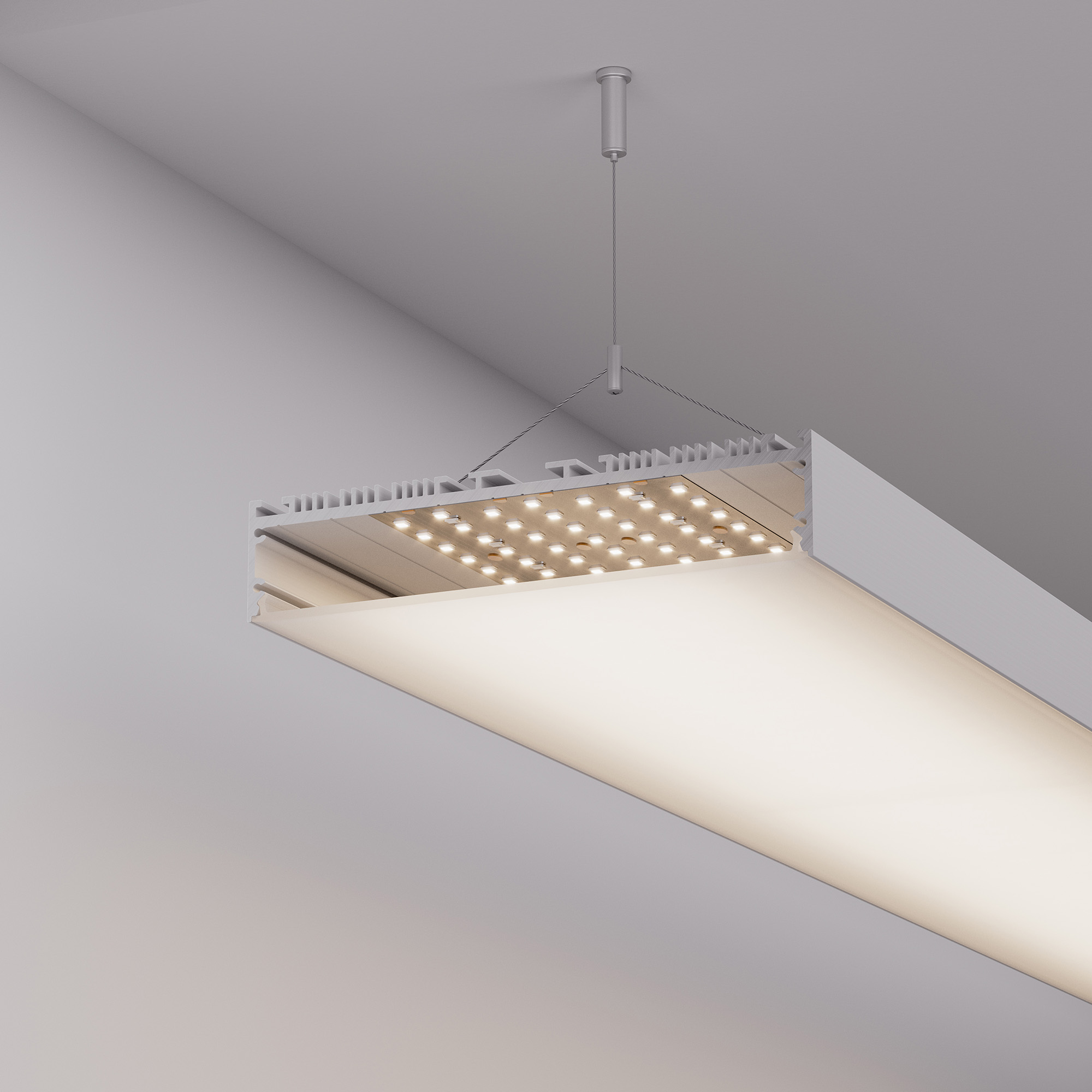 Накладной/подвесной профиль из анодированного алюминия для основного освещения и контурной подсветки.