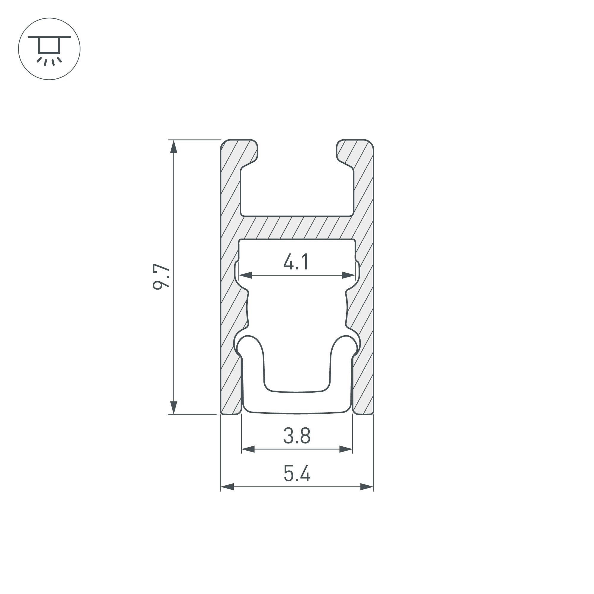 Алюминиевый анодированный профиль для светодиодных лент и линеек. Габаритные размеры (L×W×H): 2000x5,4x9,7 мм (с экраном). Ширина площадки для ленты 4,1 мм. Экраны, заглушки и другие аксессуары приобретаются отдельно. Цена за 1 метр.