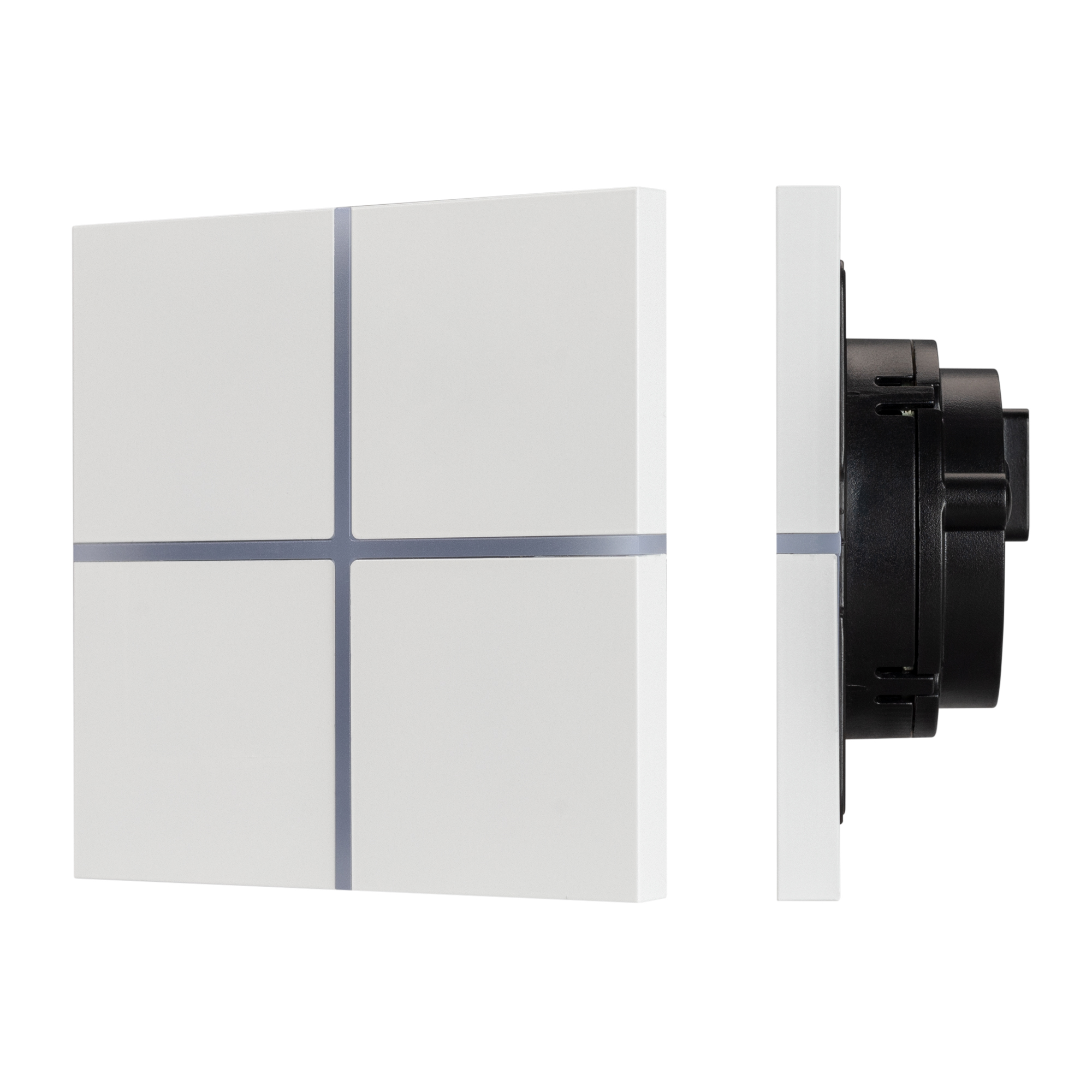 Встраиваемая металлическая панель белого цвета с сенсорным управлением, предназначенная для включения и выключения световых сцен в системах управления светом KNX. Позволяет осуществлять включение/выключение, диммирование, управление шторами и жалюзи, управлять сценами. Поддерживает управление с помощью 4 настраиваемых сенсорных клавиш. Устройство совместимо с исполнительными устройствами стандарта KNX, в том числе, мировых производителей ABB, SCHNEIDER ELECTRIC, SIEMENS, ZENNIO и другими. Удобное и точное управление при помощи отдельных сенсорных кнопок для каждой функции. Питание от шины KNX. Габариты устройства составляют 86x86x33 мм. Пластиковый корпус, цвет белый, безрамочный корпус, материал - алюминий, отклик вибрацией, светодиодная индикация.