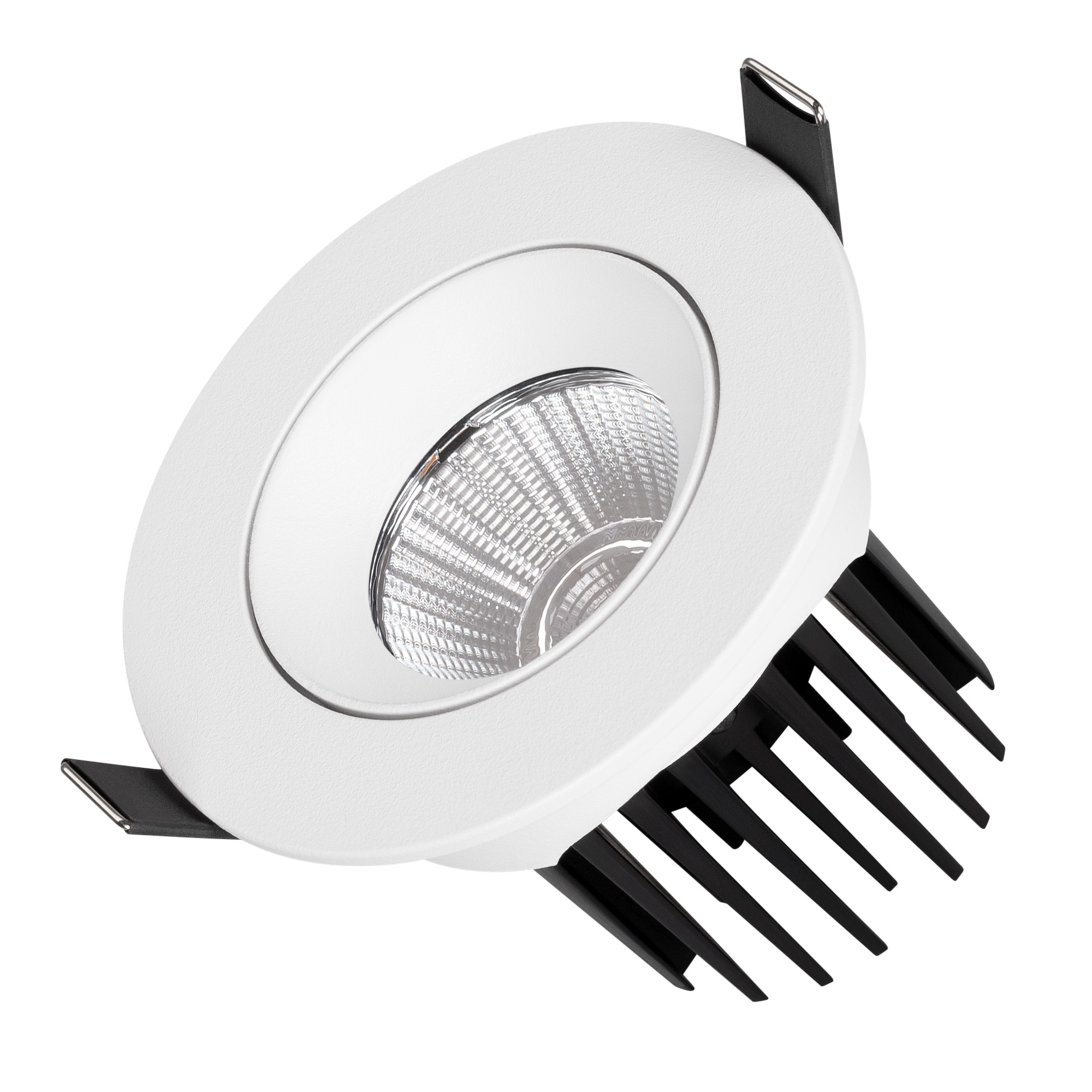 Встраиваемый поворотный светильник ATOLL мощностью 10 Вт предназначен для качественного освещения торговых, коммерческих, жилых и других помещений. Благодаря низкому коэффициенту дискомфорта, достигается комфортное освещение. Светильник обладает высоким индексом цветопередачи CRI>90 для естественного восприятия оттенков. Узкий угол излучения 36 градусов подойдет для направленного освещения. Компактный корпус выполнен из окрашенного алюминия и имеет пылевлагозащиту на уровне IP54, что позволяет применять модель в помещениях с высоким уровнем влажности и запыленности. Световой модуль отклоняется в обе стороны на 30 градусов от вертикальной оси, мгновенно изменяя направление светового потока. Светильник легко устанавливается с помощью пружин в монтажное отверстие. Драйвер IP54, поставляется в комплекте, позволяя безопасно и быстро подключать светильник напрямую к сети переменного тока 230 В. Низкий уровень пульсации обеспечивает равномерное освещение без мерцания.