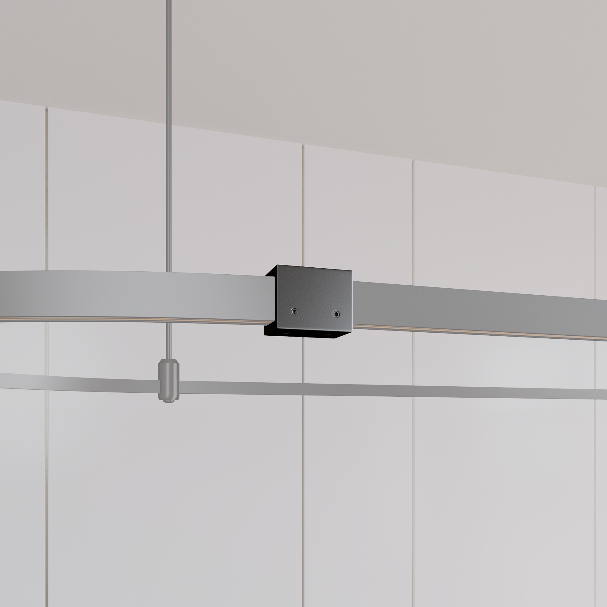 Коннектор прямой используется для горизонтального механического и электрического соединения треков. Позволяет создавать протяженные конструкции системы APRIORI. Проводит электричество, напряжение питания 48В. Изготавливается из алюминия, окрашенного в черный цвет.