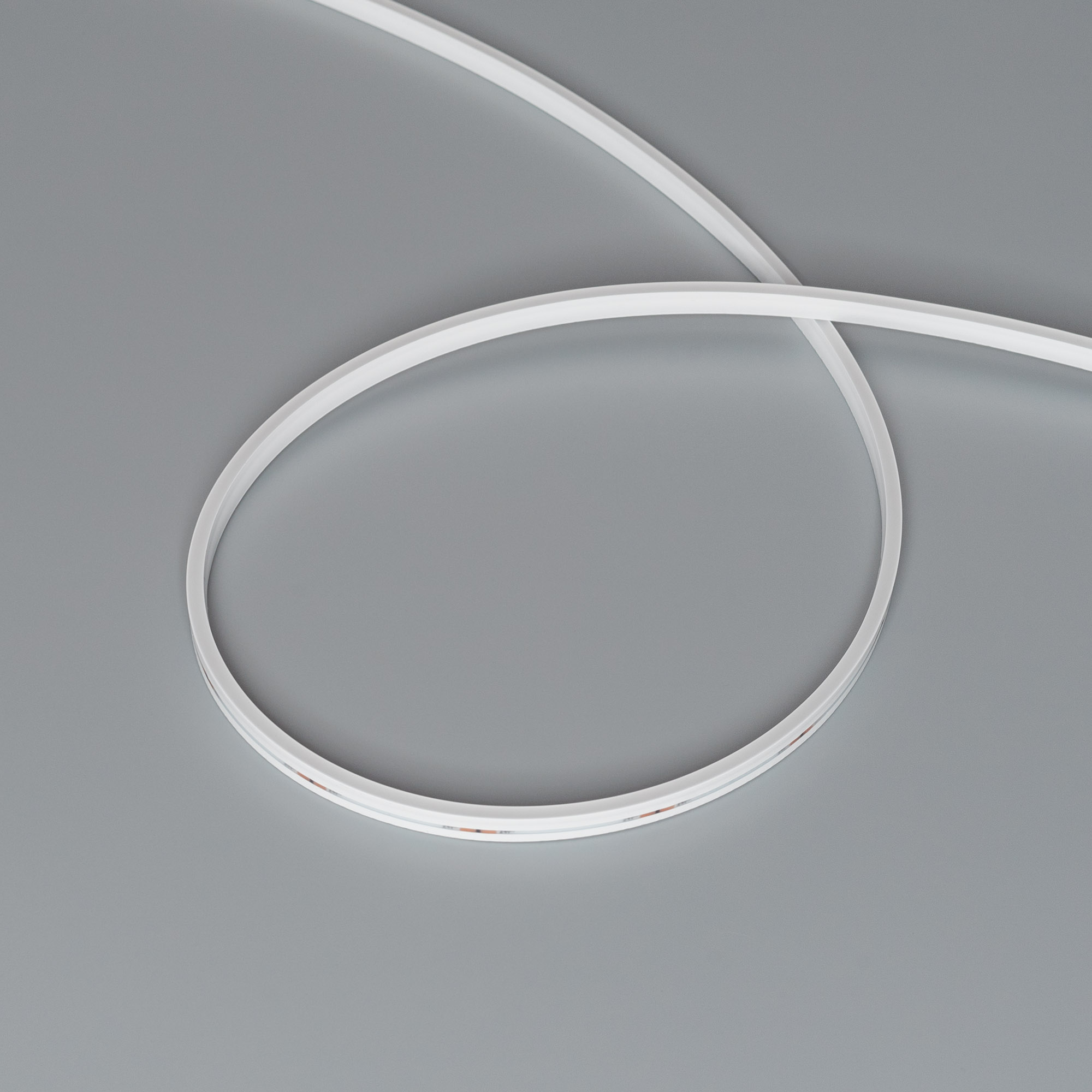 Гибкая герметичная лента MOONLIGHT имеет сечение 3×06 мм и оснащена 196 светодиодами SMD2216 на метр. Дневной цвет свечения (4000К) и световой поток в 200 лм/м позволят добиться комфортного освещения, а высокий индекс цветопередачи (CRI>90) позволяет создать отличную различимость цветовых оттенков. Лента потребляет всего 7,2 Вт/м и работает от 24 V. Она обладает классом пылевлагозащиты IP54, что, в сочетании с габаритами ленты, позволяет использовать ленту для подсветки мебели, и имеет минимальный радиус изгиба 30 мм (сам изгиб горизонтальный/SIDE). Минимальный отрезок ленты составляет 35,7 мм, а угол излучения - 112°. Габариты ленты составляют 5000×3×6 мм. Кабель питания длиной 500 мм выводится с двух сторон вдоль линии сечения ленты. Катушка содержит 5 м ленты. Цена указана за 1 м ленты. Гарантия на ленту составляет 3 года. Список совместимых аксессуаров, с помощью которых можно создавать уникальные декоративные композиции, находится в разделе "Совместимые".