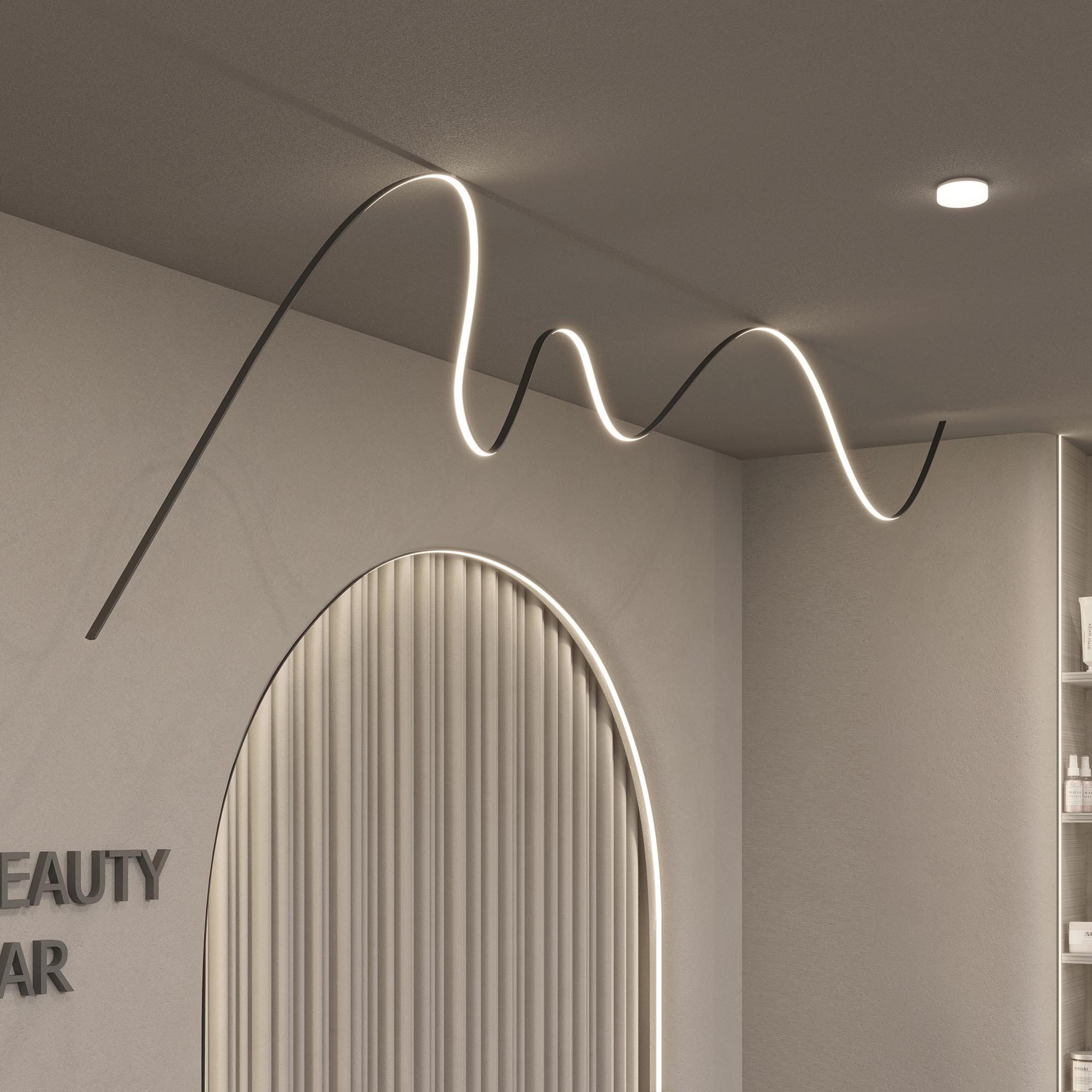 Накладной гибкий профиль черного цвета из анодированного алюминия для контурной подсветки изогнутых поверхностей, а также для создания световых линий различных форм.
