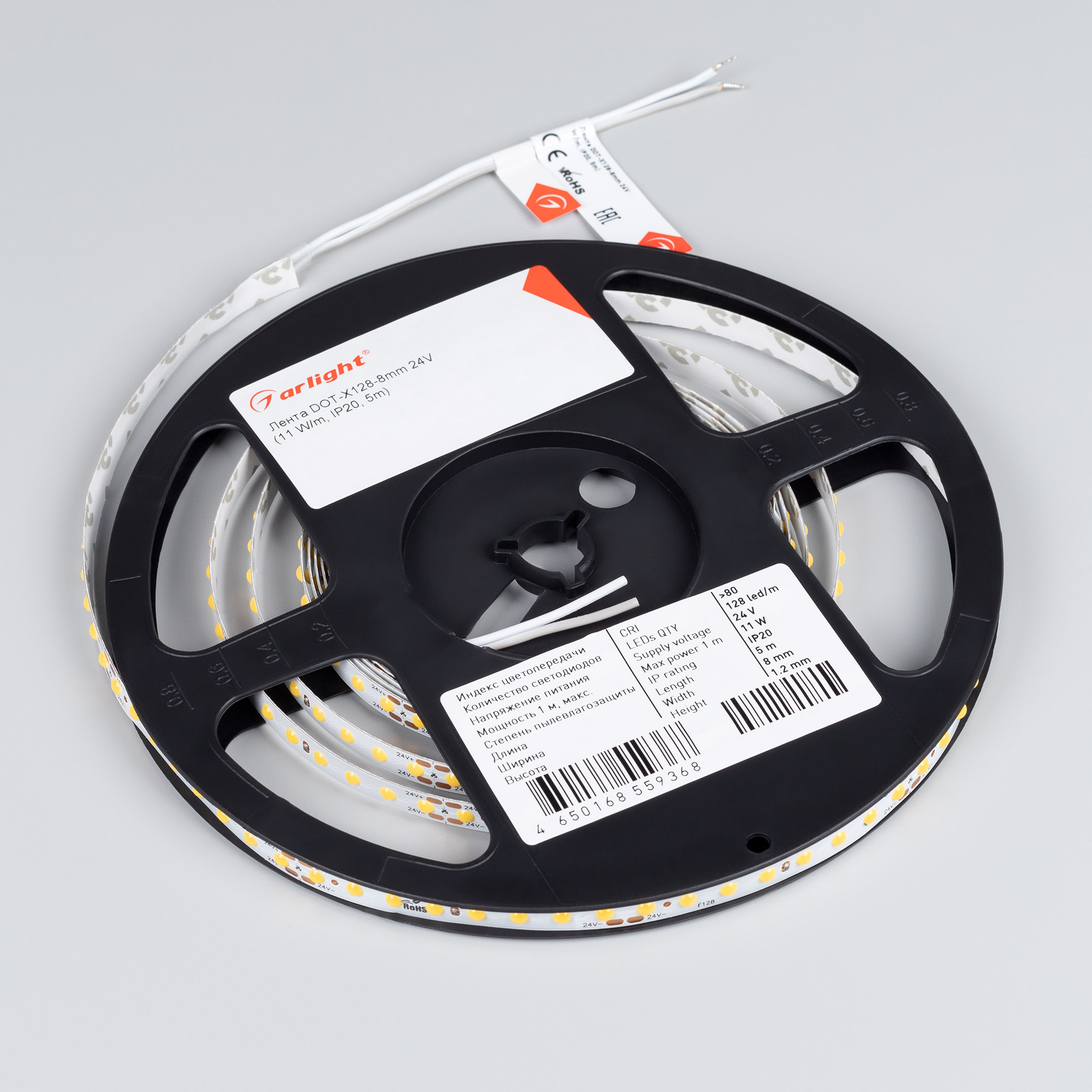 Светодиодная лента DOT с видимой световой точкой серии X128, шириной 8 мм, мощностью 11 Вт/м. Напряжение питания 24 В. Светодиоды CSP, 128 шт/м, белого цвета свечения (6000K). Минимальный отрезок 62.5 мм (8 светодиодов). Декоративная лента DOT с видимыми точками светодиодов предназначена для подсветки интерьера, оформления рекламы, подсветки ниш, потолков.