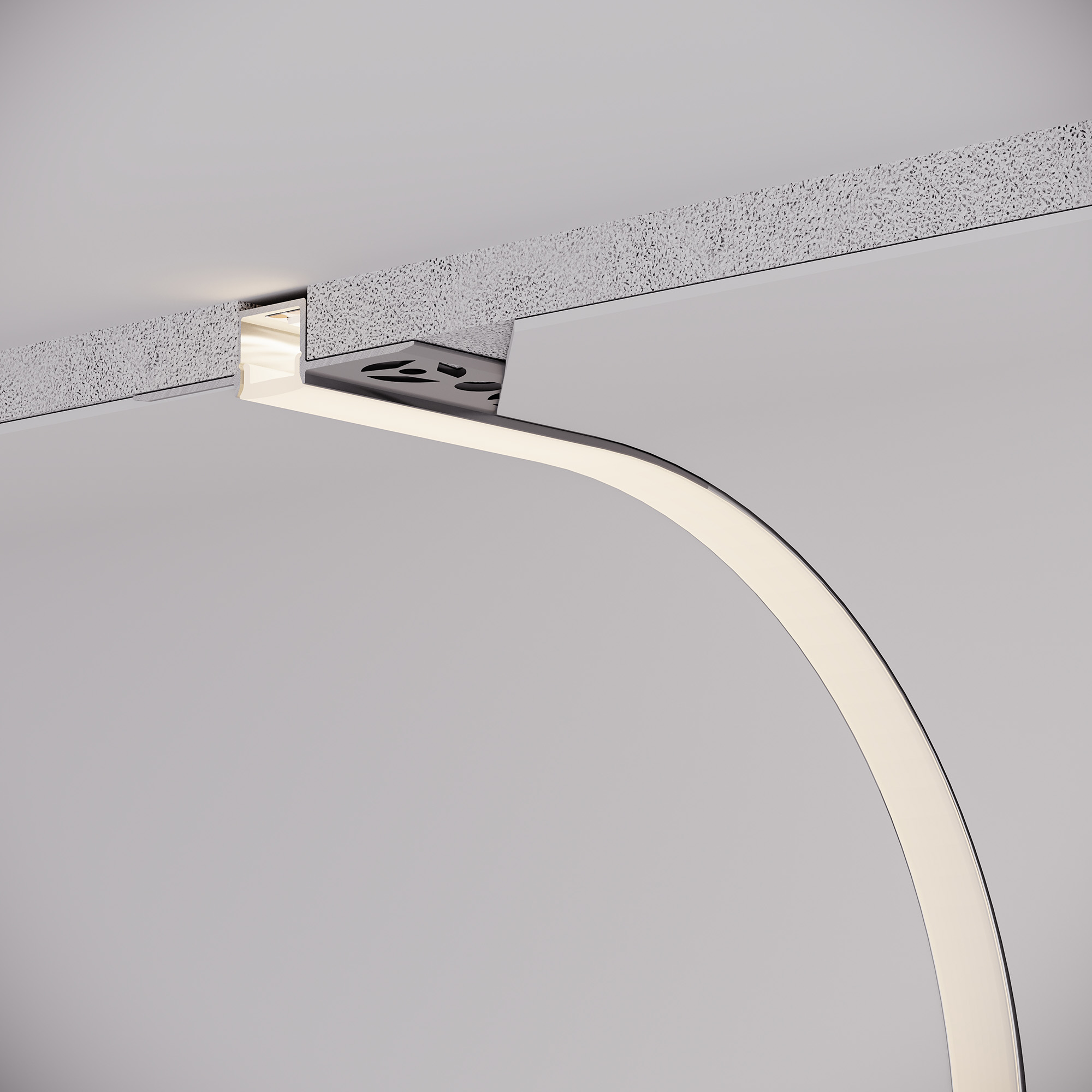 Встраиваемый гибкий профиль из анодированного алюминия со скрытым фланцем под строительную отделку устанавливается в потолки и потолочные ниши из гипсокартона. Минимальный радиус вертикального изгиба (вверх/вниз) 30 см. Габаритные размеры профиля составляют 2000 мм в длину, 52,8 мм в ширину и 11,8 мм в высоту. Площадка для установки светодиодных лент позволяет использовать ленту шириной до 10,6 мм и мощностью до 16 Вт/м. Это обеспечивает гибкость в выборе светодиодных лент и создает потрясающие световые решения. Совместим с прямым алюминиевым профилем FANTOM-W12 и гибким FANTOM-BENT-W12-SIDE. Сочетание разных видов профиля поможет подчеркнуть как прямые, так и изогнутые контуры интерьера, а также создать круги и волнообразные линии, переходящие с потолка на стены. Экраны, заглушки и другие аксессуары не включены в комплект и приобретаются отдельно. Цена указана за 1 метр профиля.