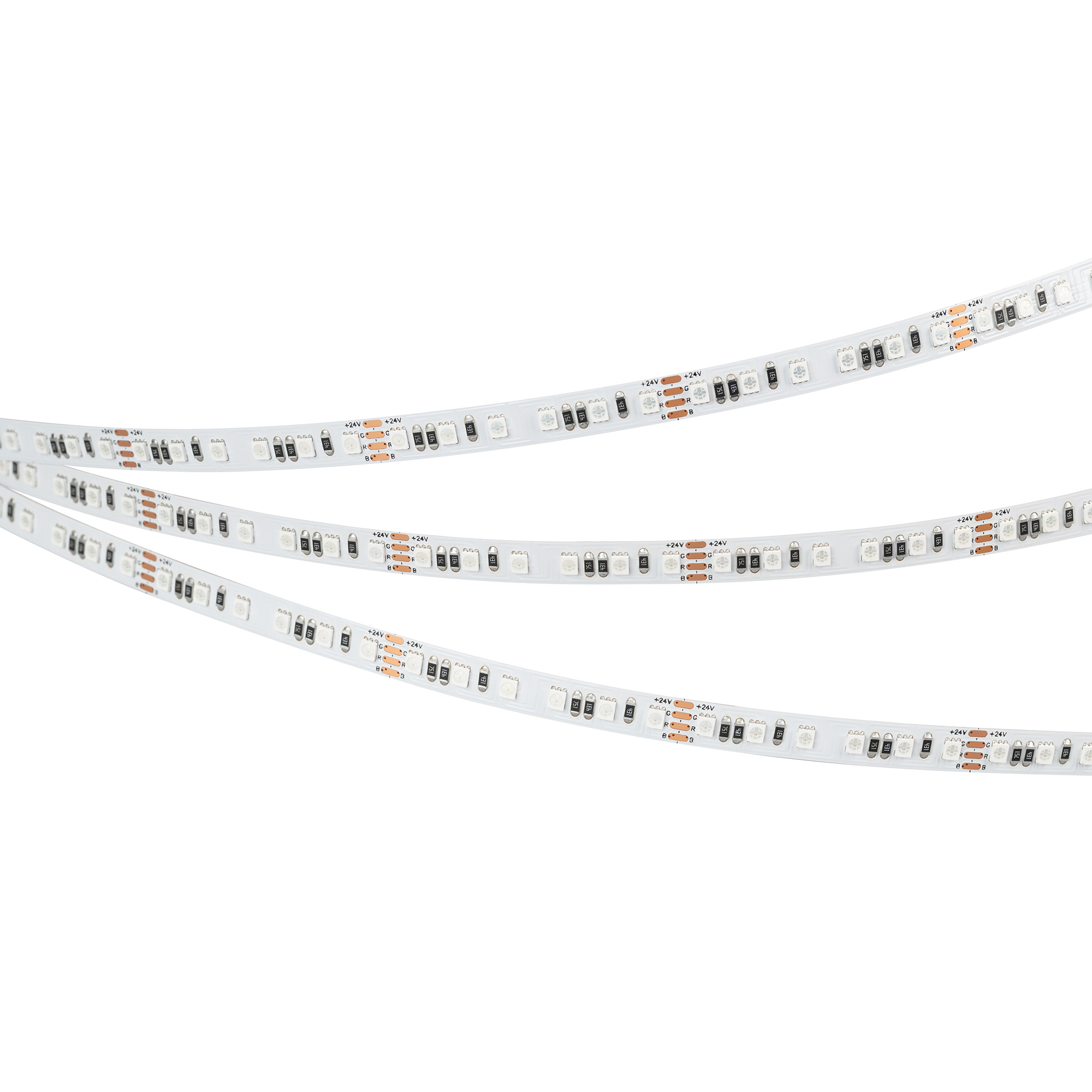 Мультицветная светодиодная лента RT серии A120 шириной 8 мм, мощностью 12 Вт/м. Цвет свечения RGB. Напряжение питания 24 В. Светодиоды SMD 2835 (120 шт/м). Минимальный отрезок 50 мм (6 светодиодов). Трехканальная лента с 4 проводами для подключения, управляется RGB-контроллером. Применяется для создания яркой цветной декоративной подсветки элементов интерьера, ниш, рекламных конструкций, витрин, зон отдыха.