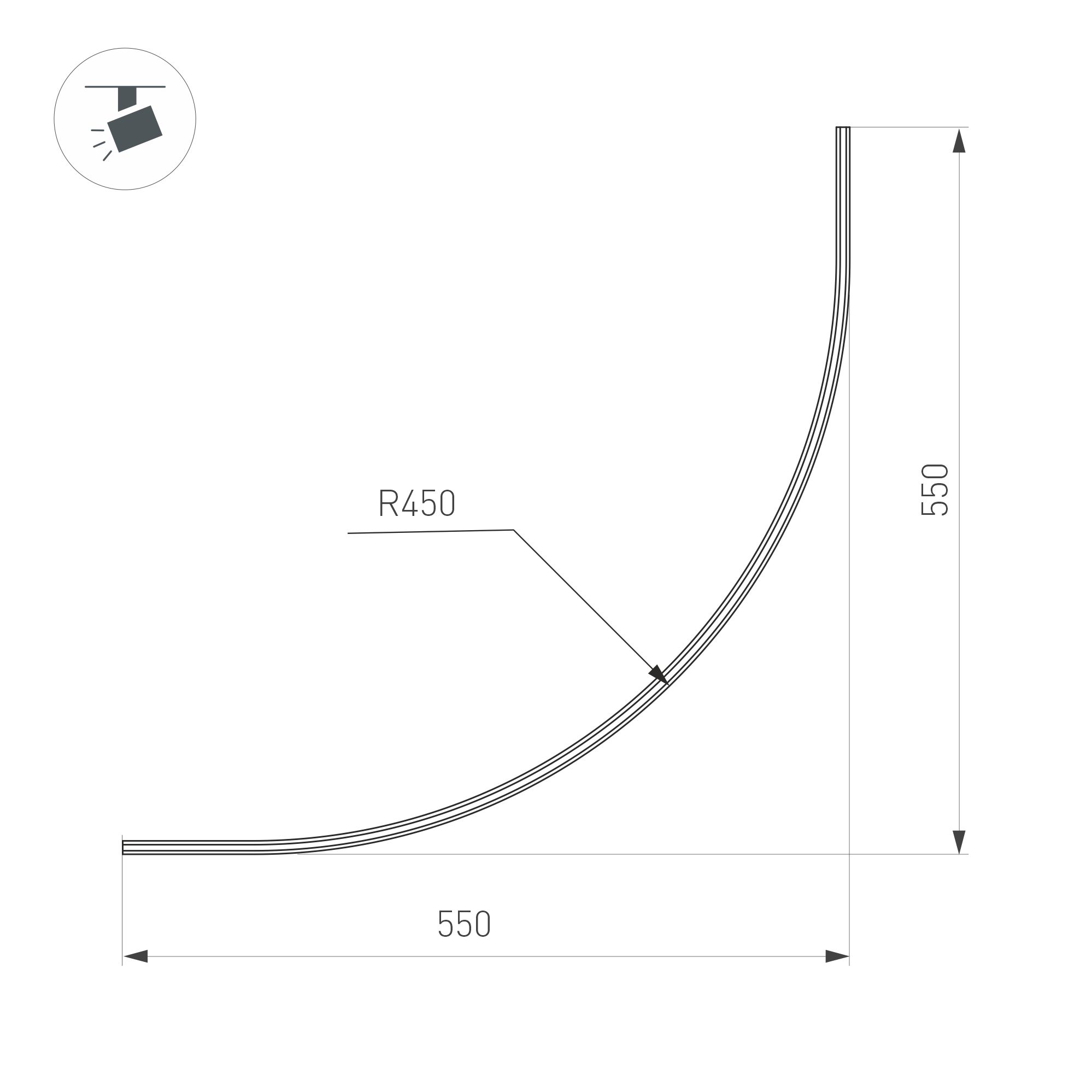 Магнитный трек MAG-MICROCOSM-TRACK-1115-ARC 550 мм * 550 мм, высотой 15 мм, радиусом изгиба 450 мм, с напряжением питания 24В предназначен для накладного монтажа. Цвет черный, заглушки в комплект не входят. В комплекте 4 дюбеля и 4 самореза. Блок питания постоянного напряжения 24 В для подключения трек-системы к сети 230В приобретается отдельно. Комбинируя прямой и радиусный трек можно составлять оригинальные световые линии.