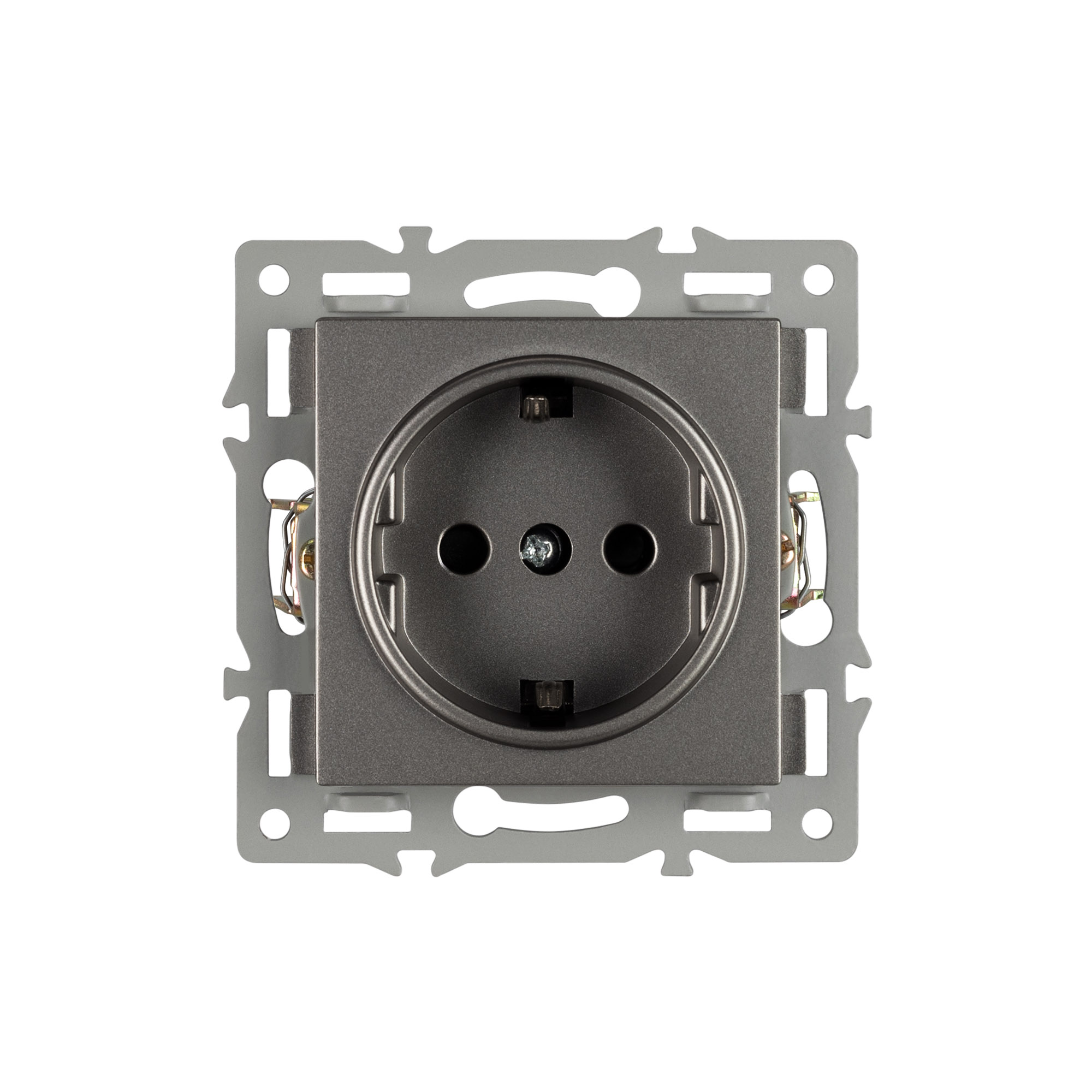 Механизм розетки с заземлением 1 пост, с суппортом из алюминия. Цвет - серый. Степень пылевлагозащиты - IP20. Устанавливается в стандартный круглый подрозетник 220V (Арт.044895). Рабочее напряжение 110-250V. Макс. ток нагрузки 16А. Габаритные размеры: длина 74 мм, ширина 74 мм, высота 37 мм. Гарантийный срок 10 лет.