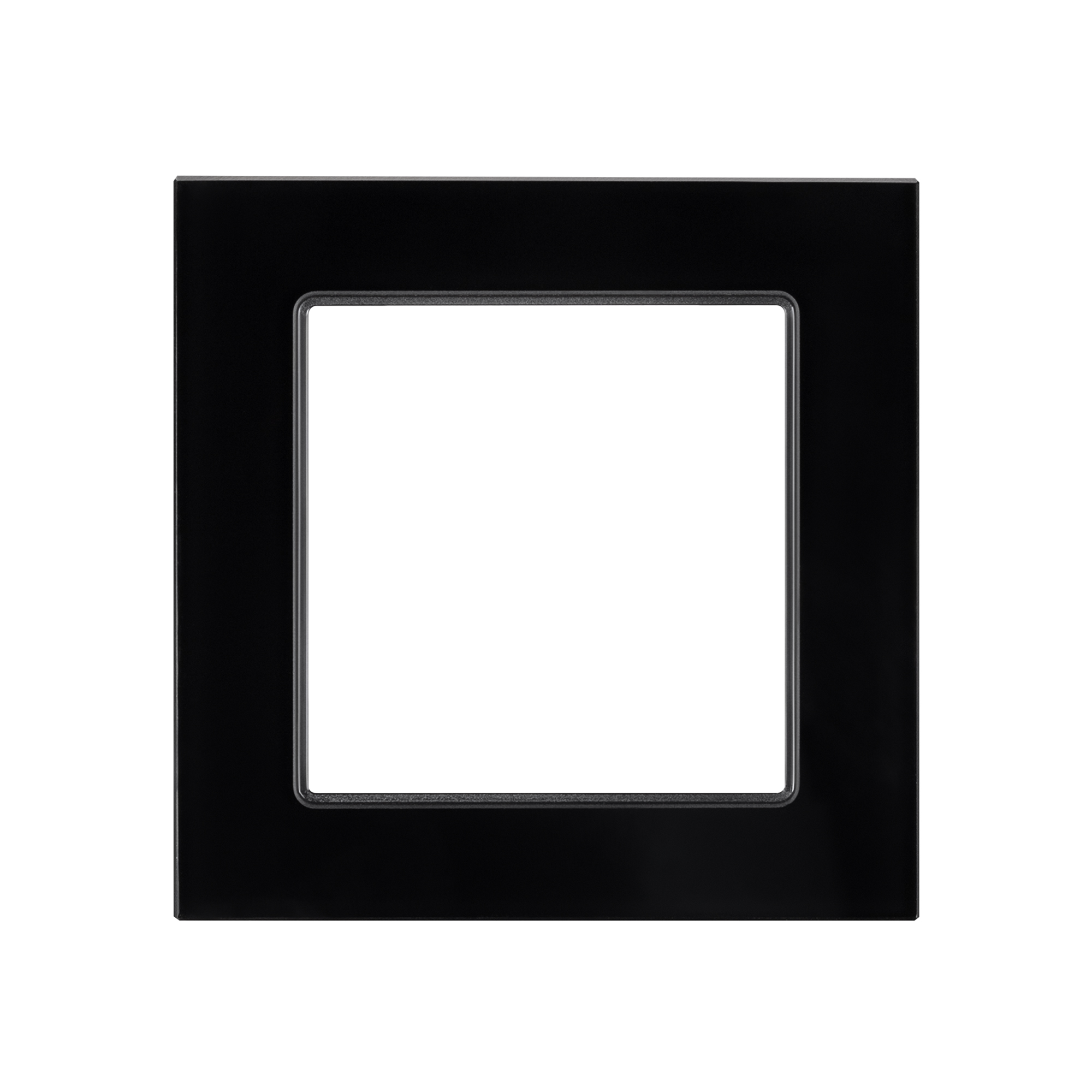 Рамка стеклянная на 1 пост, под встраиваемый механизм (квадрат). Цвет - черный. Ориентации монтажа - горизонтальная.