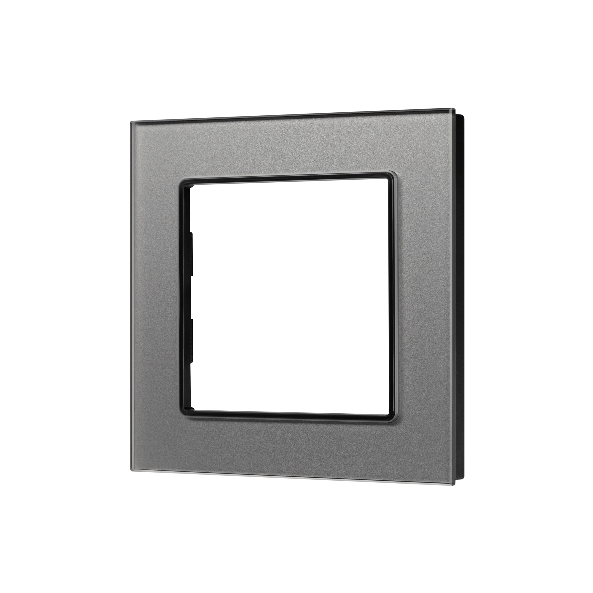 Рамка стеклянная на 1 пост, под встраиваемый механизм (квадрат). Цвет - серый. Ориентации монтажа - горизонтальная.