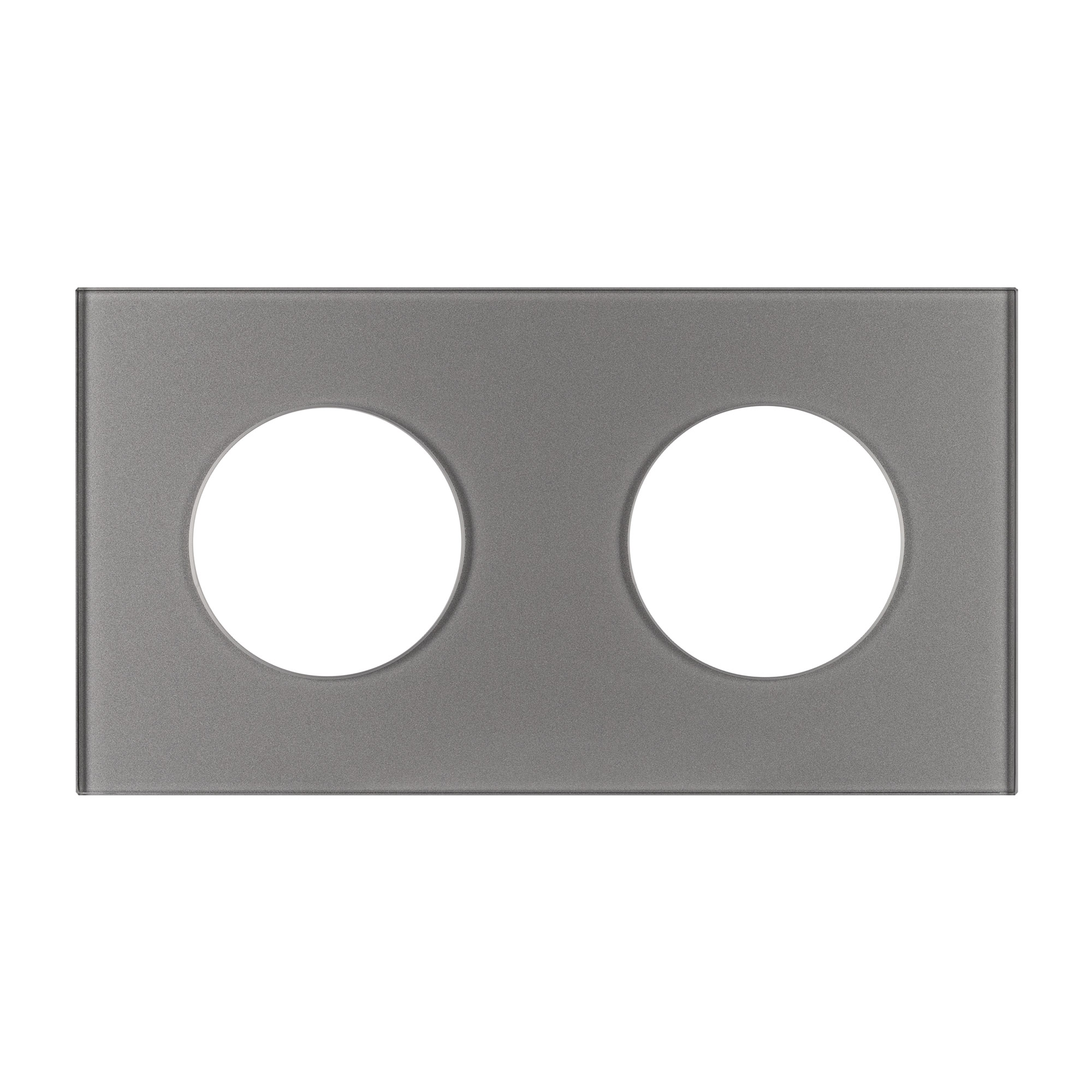 Рамка стеклянная на 2 поста, под встраиваемый механизм. Вырез под функциональную часть круг. Цвет - серый. Ориентации монтажа - горизонтальная.