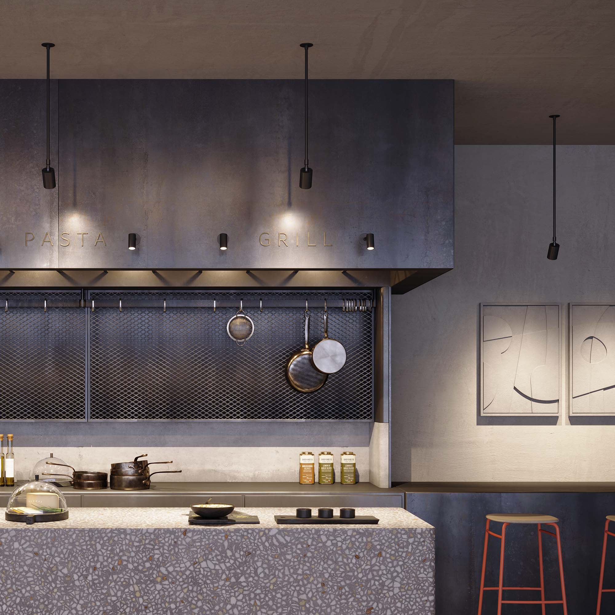 Светильники PERISCOPE на жестком подвесе привлекут внимание к самым интересным деталям вашего интерьера.