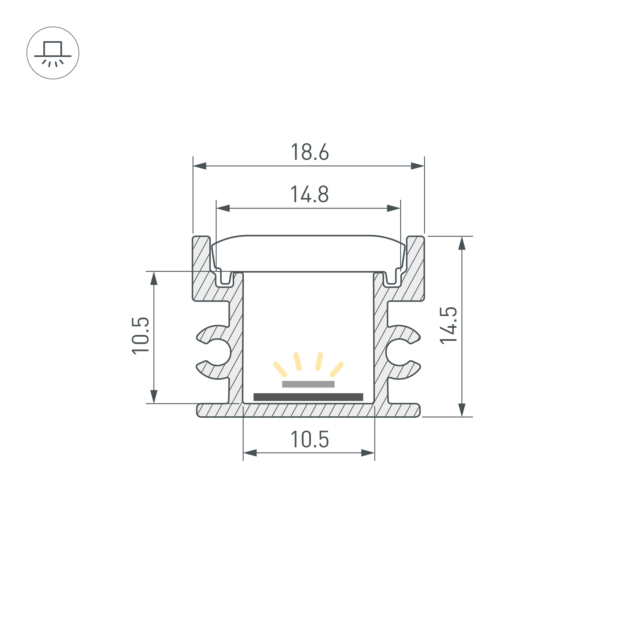 Габаритные размеры профиля составляют 3000 мм в длину, 18 мм в ширину и 15 мм в высоту. Площадка для установки светодиодных лент позволяет использовать ленту шириной до 10,5 мм и мощностью до 17 Вт/м. Это обеспечивает гибкость в выборе светодиодных лент и создает потрясающие световые решения.