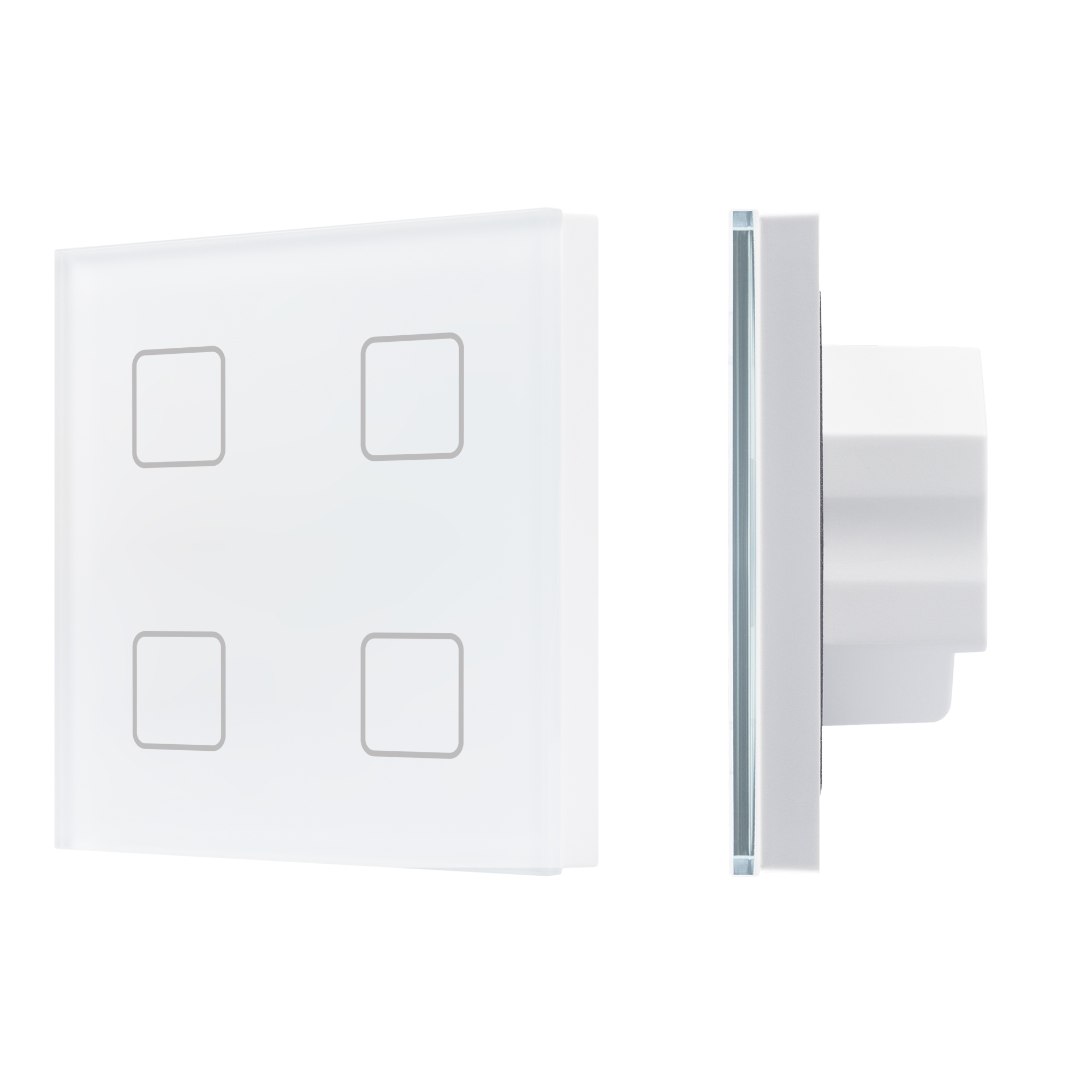 Встраиваемая стеклянная панель белого цвета с сенсорным управлением, предназначенная для управления светодиодным или любым другим освещением в системах управления светом DALI. Позволяет включать/выключать свет и менять его яркость по 4 адресам. Установка адреса выполняется переключателями на задней стороне корпуса панели. Устройство совместимо с диммерами стандарта DALI. Передача команд от панели к диммерам выполняется по общей двухпроводной шине DALI. Удобное и точное управление при помощи отдельных сенсорных с подсветкой синего цвета. Наличие датчика приближения и звукового сигнала срабатывания (можно отключить). Питание от шины DALI. Габариты устройства составляют 86x86x34.5 мм, установка в стандартную монтажную коробку.