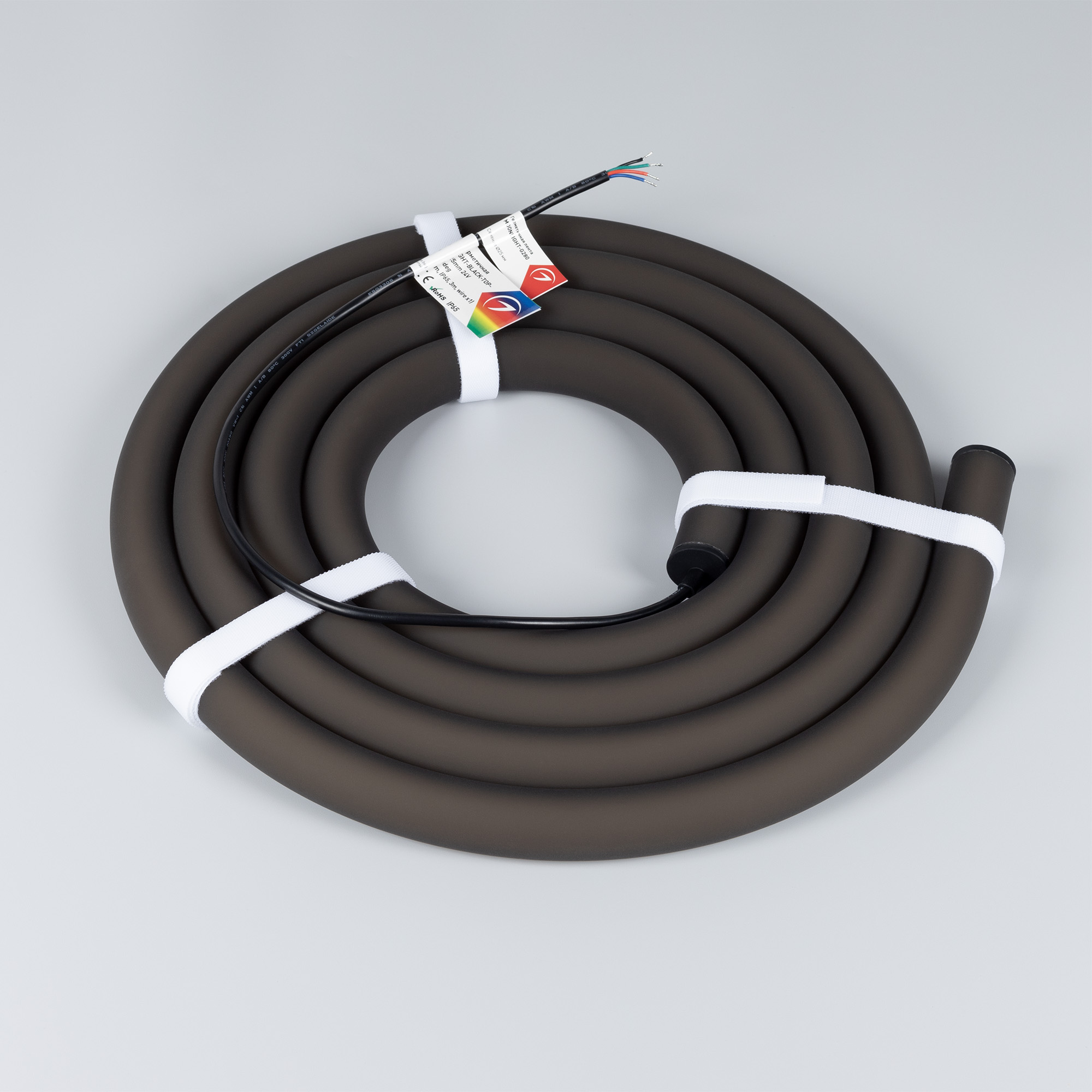 Гибкая герметичная лента MOONLIGHT чёрного цвета. Имеет круглое сечение 25×25 мм и оснащена 280 светодиодами SMD3838 на метр. Возможность изменять цвет ленты (RGB) позволяет подобрать нужный оттенок для вашего освещения. Угол излучения ленты составляет 360°, что позволит создавать с ее помощью уникальные элементы декора. Лента потребляет всего 14,4 Вт/м и работает от 24 V. Она обладает классом пылевлагозащиты IP65, что позволяет использовать ленту в т.ч. во влажных помещениях, и имеет минимальный радиус изгиба 120 мм. Габариты ленты составляют 3000×25×25 мм. Кабель питания длиной 500 мм выводится с одной стороны вдоль линии сечения ленты. Катушка содержит 3 м ленты. Цена указана за 1 катушку. Гарантия на ленту составляет 3 года. Список совместимых аксессуаров, с помощью которых можно создавать уникальные декоративные композиции, можно увидеть в разделе "Совместимые".