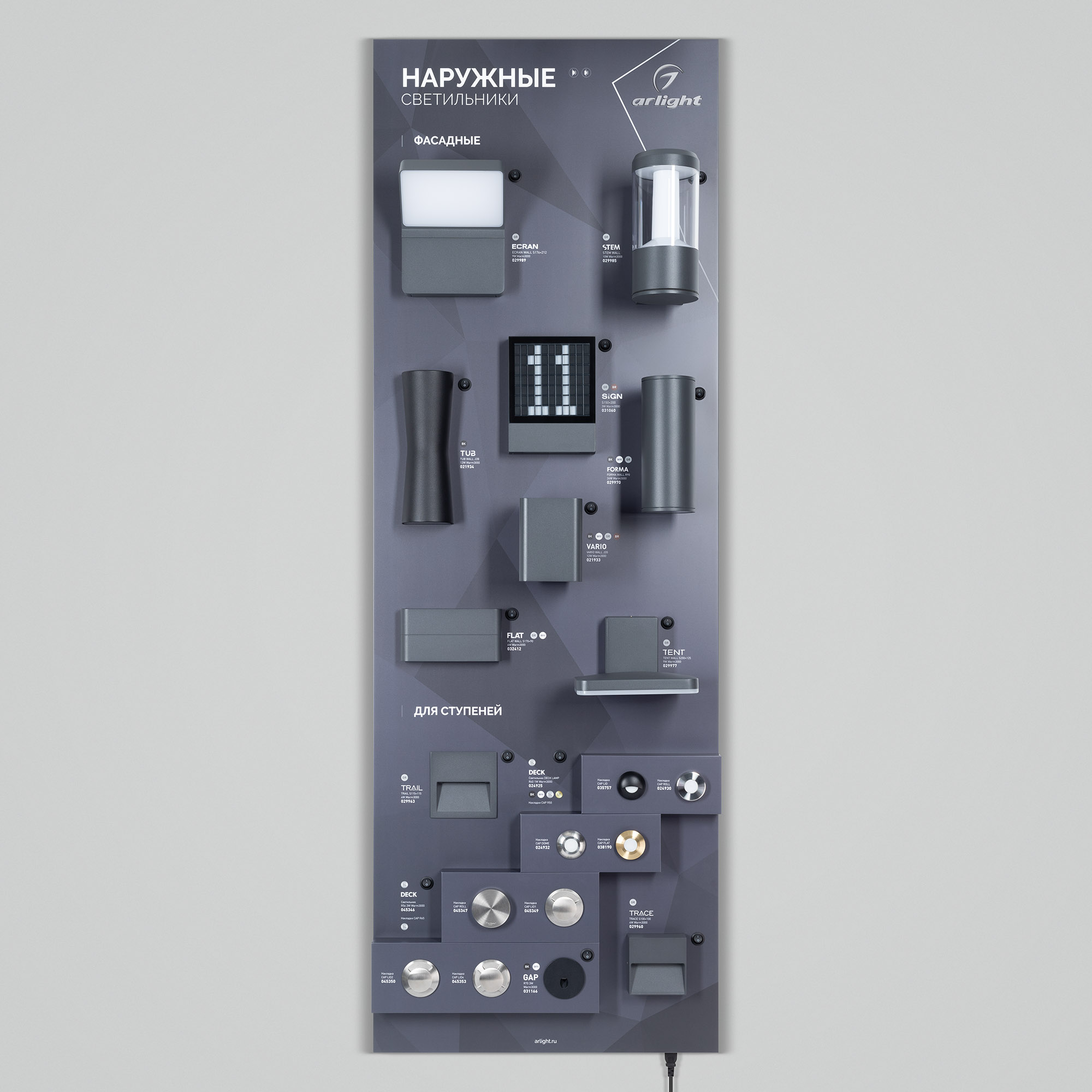 Стенд НАРУЖНОЕ ОСВЕЩЕНИЕ. Фасадные серии - SIGN, STEM, ECRAN, TUB, FORMA, VARIO, WALL FLAT, TENT , для ступеней - TRAIL, DECK, TRACE, GAP.