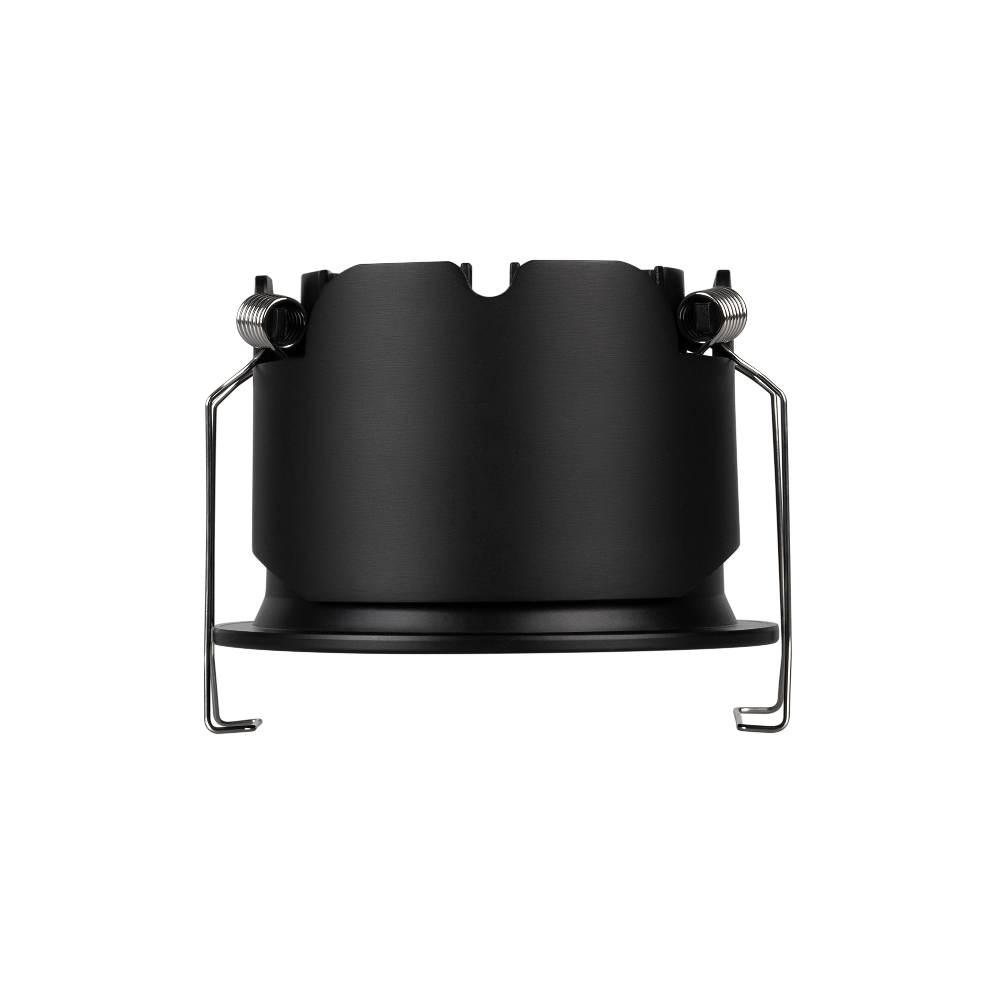 Встраиваемый светильник даунлайт. Мощность 10 Вт, св. поток 980 лм, 98 лм/Вт, дневной 4000 K, CRI>90, угол 36°, напряжение питания 230 В. Чёрный круглый корпус из алюминия, степень защиты IP20. Размер: диаметр 82 мм, высота 53 мм. Монтаж встраиваемый, установочное отверстие: диаметр 75 мм. UGR<14. Драйвер 30-42 В, 250 мА, пульсация <2%.