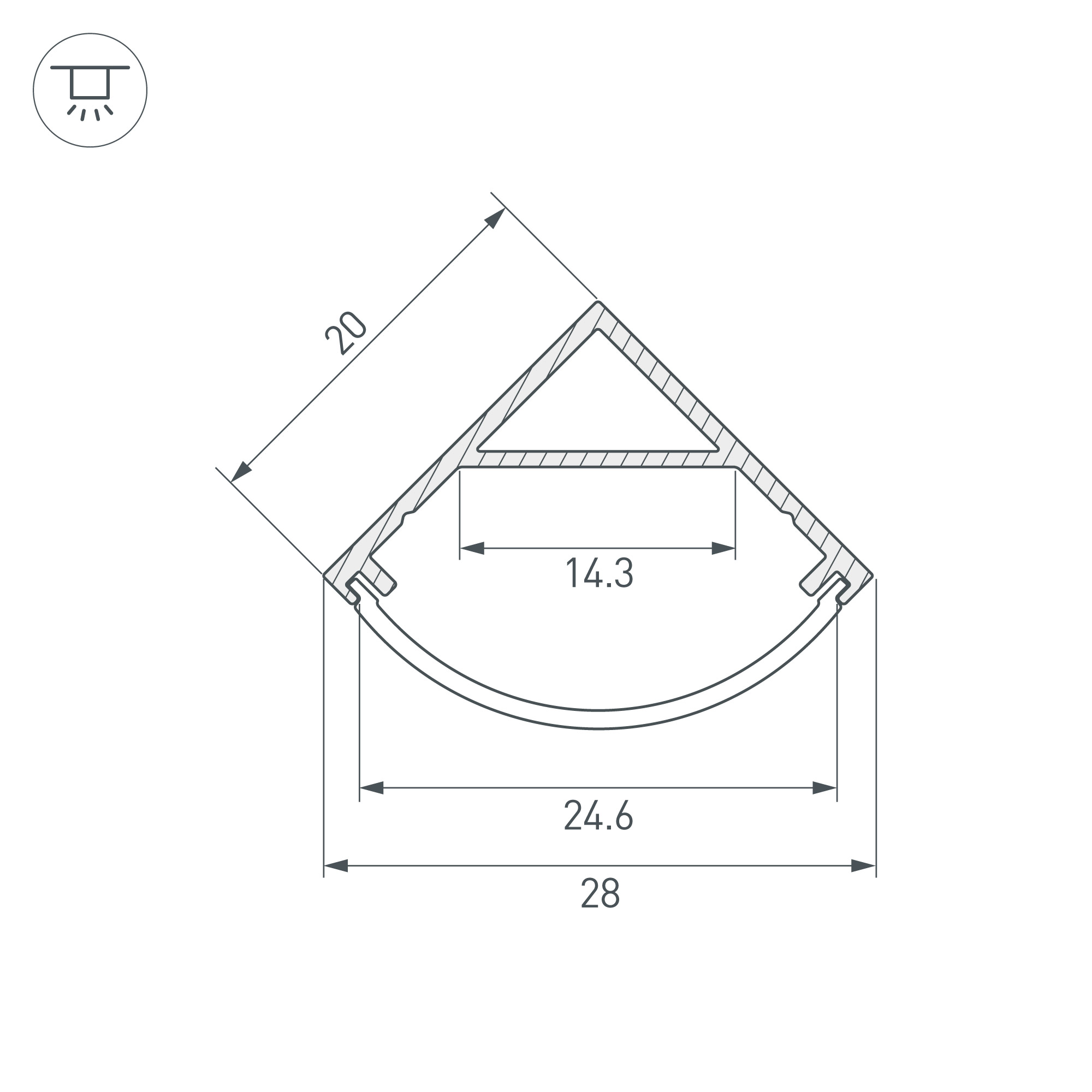 Накладной угловой профиль из алюминия черного цвета для подсветки мебели, пазов, ниш и других элементов интерьера. Габаритные размеры профиля составляют 2000 мм в длину, 20 мм в ширину и 20 мм в высоту. Площадка для установки светодиодных лент позволяет использовать ленту шириной до 14 мм и мощностью до 17,8 Вт/м. Это обеспечивает гибкость в выборе светодиодных лент и создает потрясающие световые решения.
