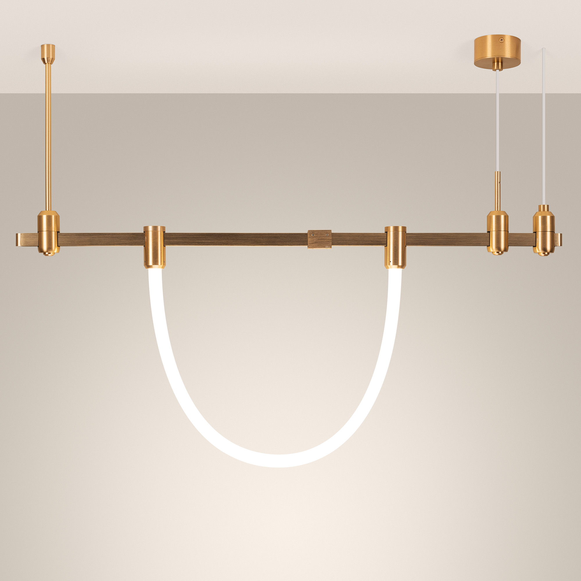 Светильник гибкий для треков APRIORI. Мощность 12 Вт, св. поток 950 лм, 79 лм/Вт, дневной 4000 K, CRI>90, угол 360°, напряжение питания 48 В. Матовый белый фигурный корпус из силикона с креплениями, анодированными в цвет светлое золото, степень защиты IP20. Размер: длина 1000 мм, диаметр неона 25мм, диаметр крепления 38 мм, высота крепления 70 мм. Монтаж на трек APRIORI Пульсация <1%. Возможно диммирование по ШИМ (PWM) или не адресное управление при использовании диммируемого драйвера Dali, 0-10V, TRIAC.