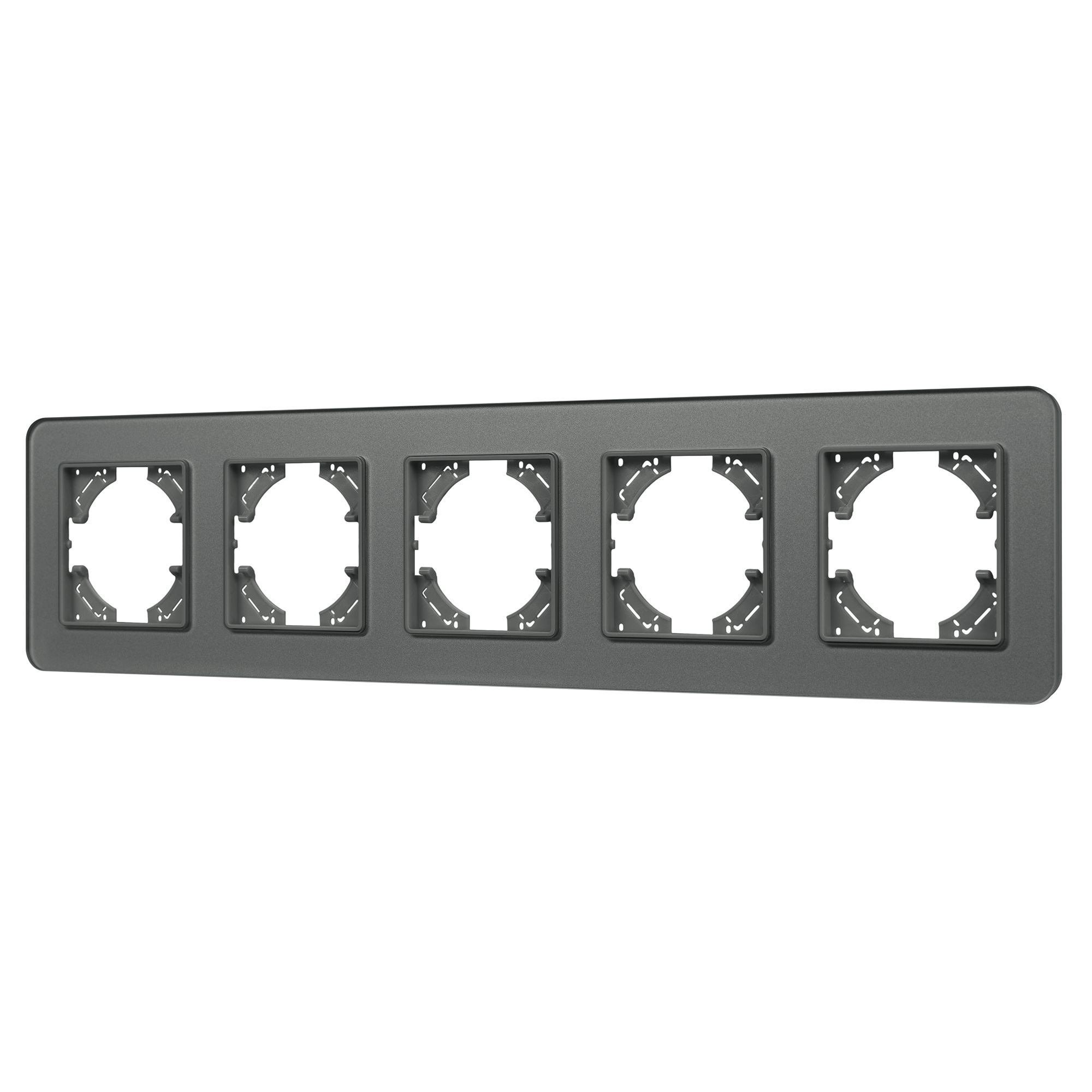 Рамка стеклянная на 5 постов, под встраиваемый механизм. Цвет - серый. Уровень герметичности IP20. Ориентация монтажа - горизонтальная (основным ориентиром служат посадочные выступы для накладки механизма).