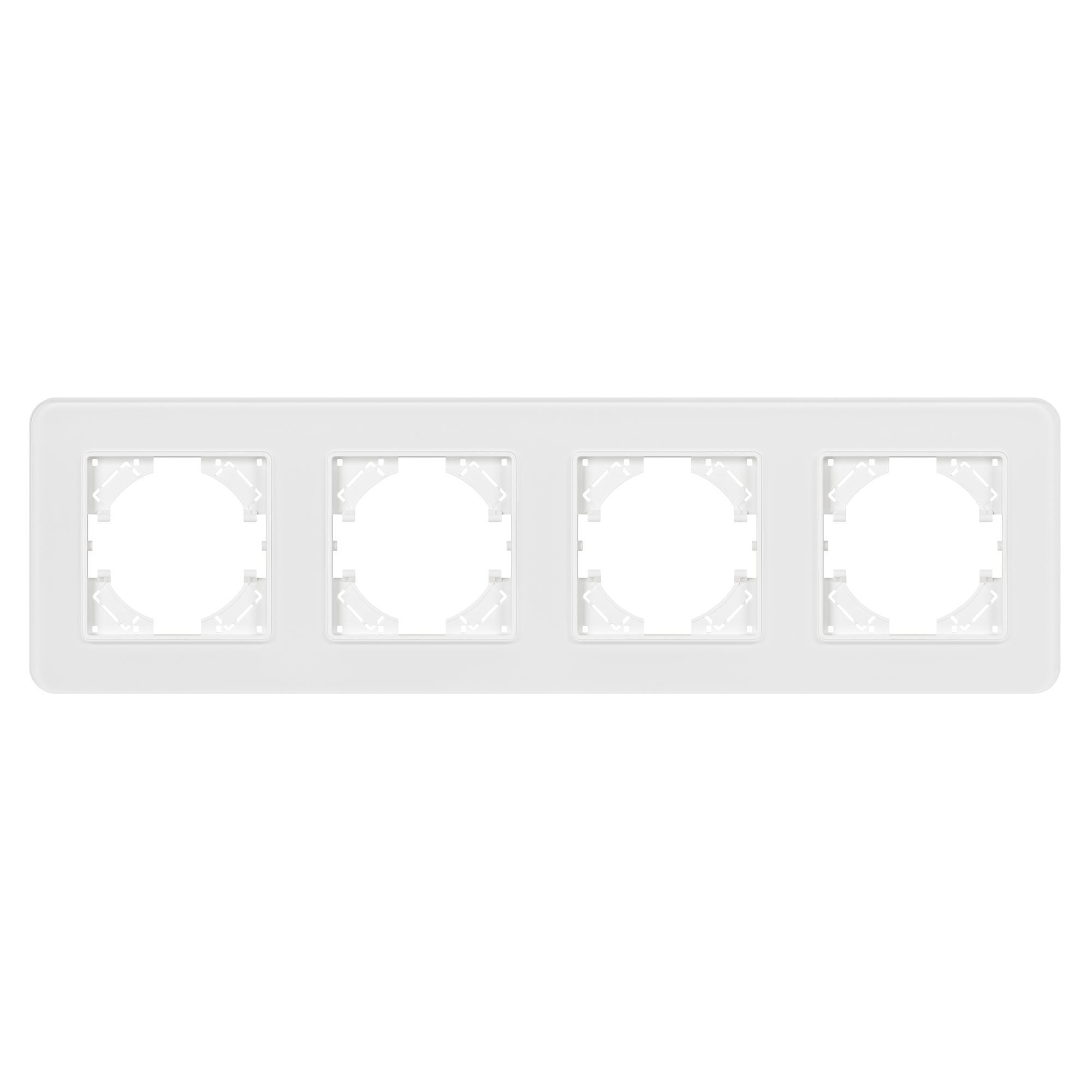 Рамка стеклянная на 4 поста, под встраиваемый механизм. Цвет - белый с Soft-Touch покрытием. Уровень герметичности IP20. Ориентация монтажа - горизонтальная (основным ориентиром служат посадочные выступы для накладки механизма).