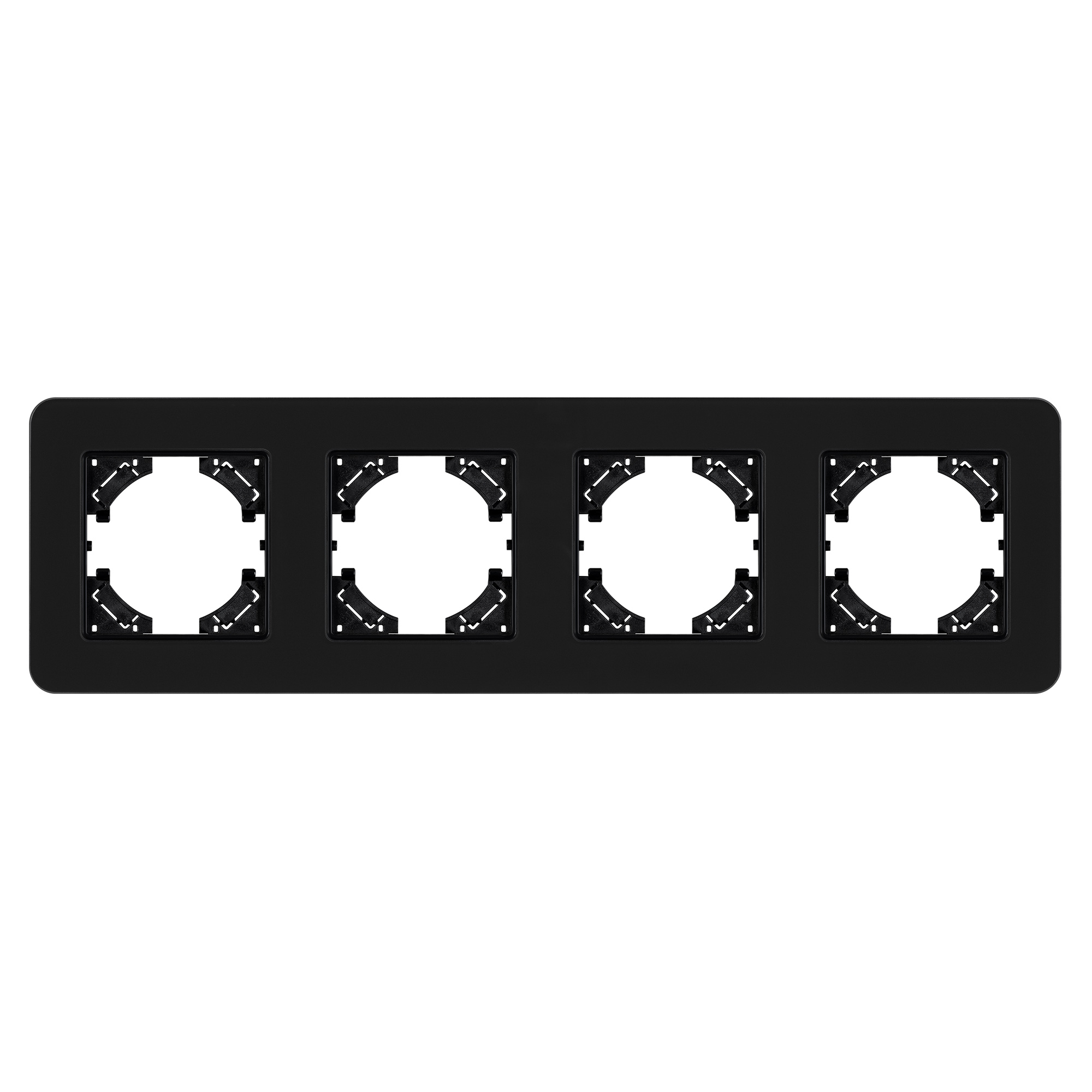 Рамка стеклянная на 4 поста, под встраиваемый механизм. Цвет - черный с Soft-Touch покрытием. Уровень герметичности IP20. Ориентация монтажа - горизонтальная (основным ориентиром служат посадочные выступы для накладки механизма).