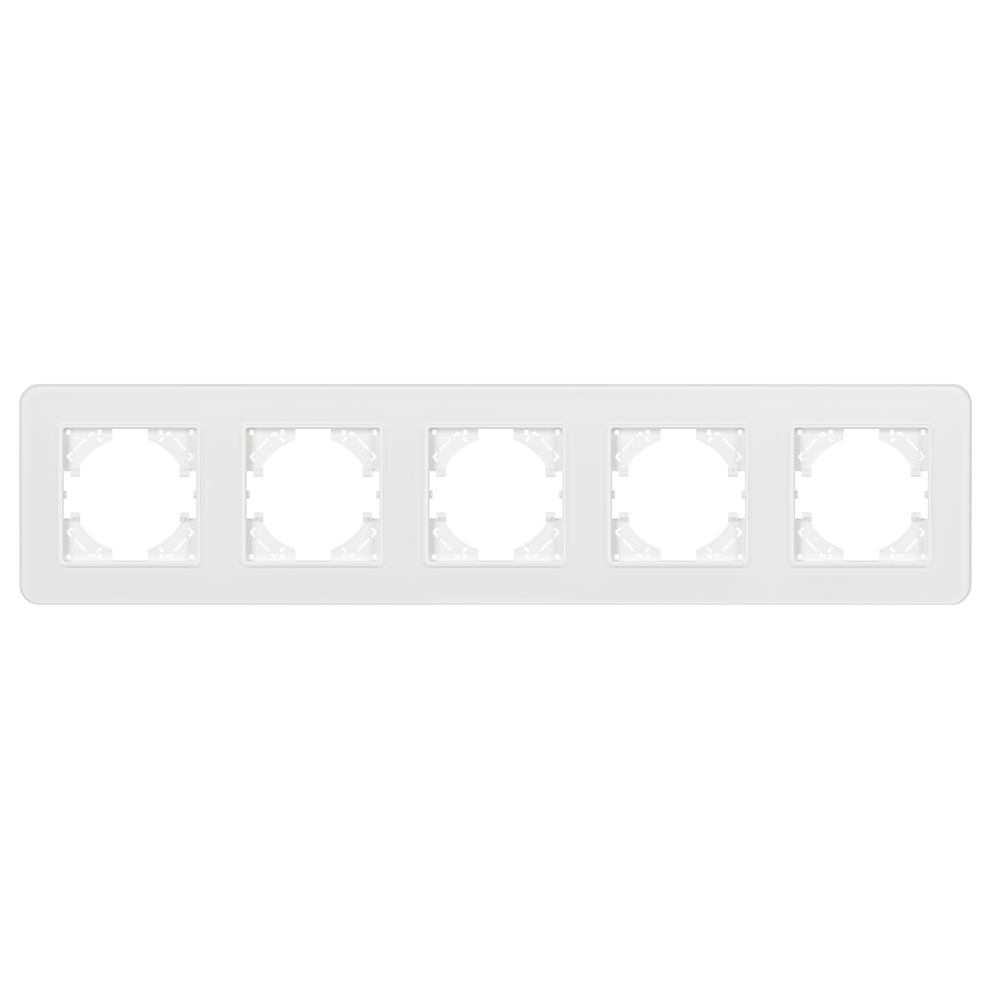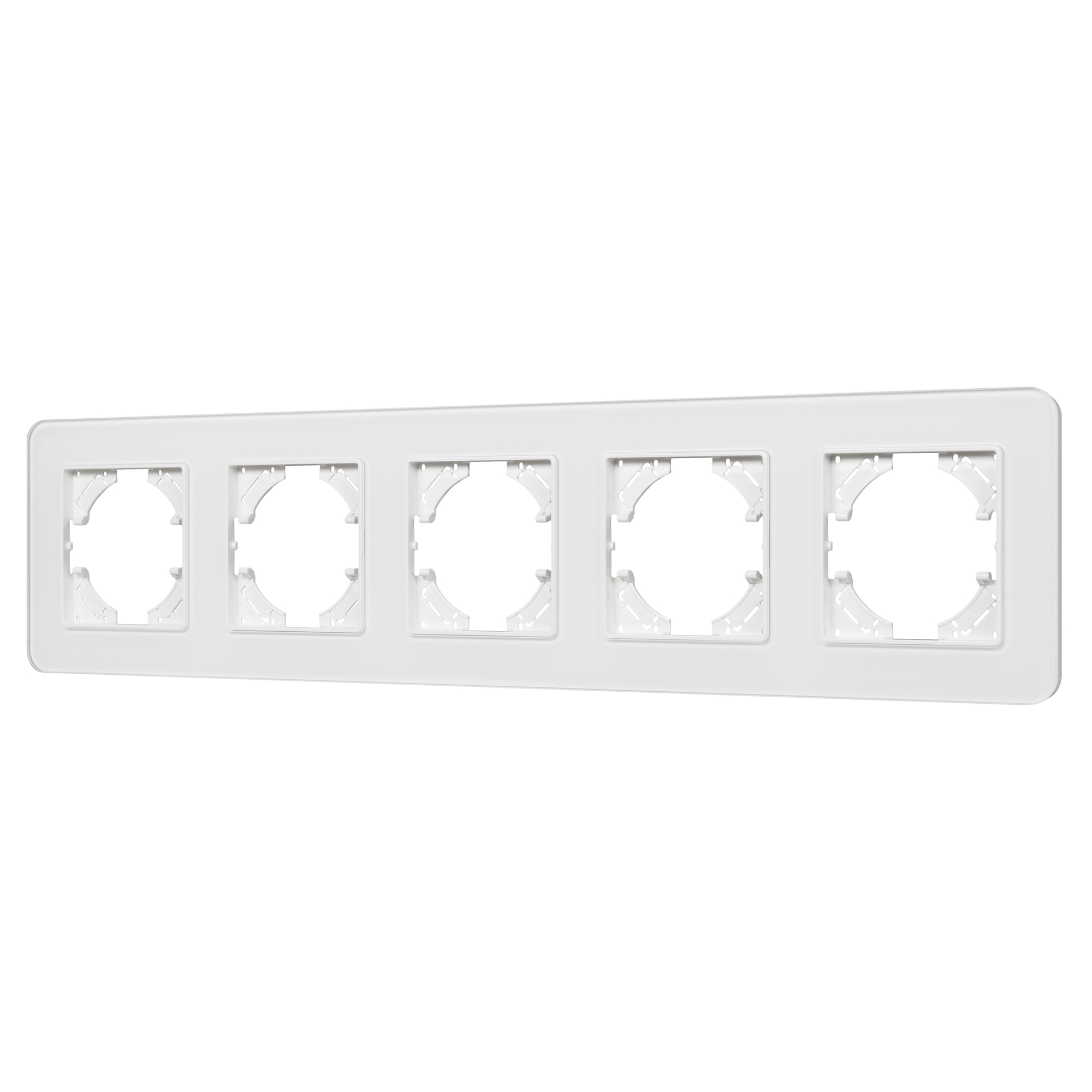 Рамка стеклянная на 5 постов, под встраиваемый механизм. Цвет - белый с Soft-Touch покрытием. Уровень герметичности IP20. Ориентация монтажа - горизонтальная (основным ориентиром служат посадочные выступы для накладки механизма).