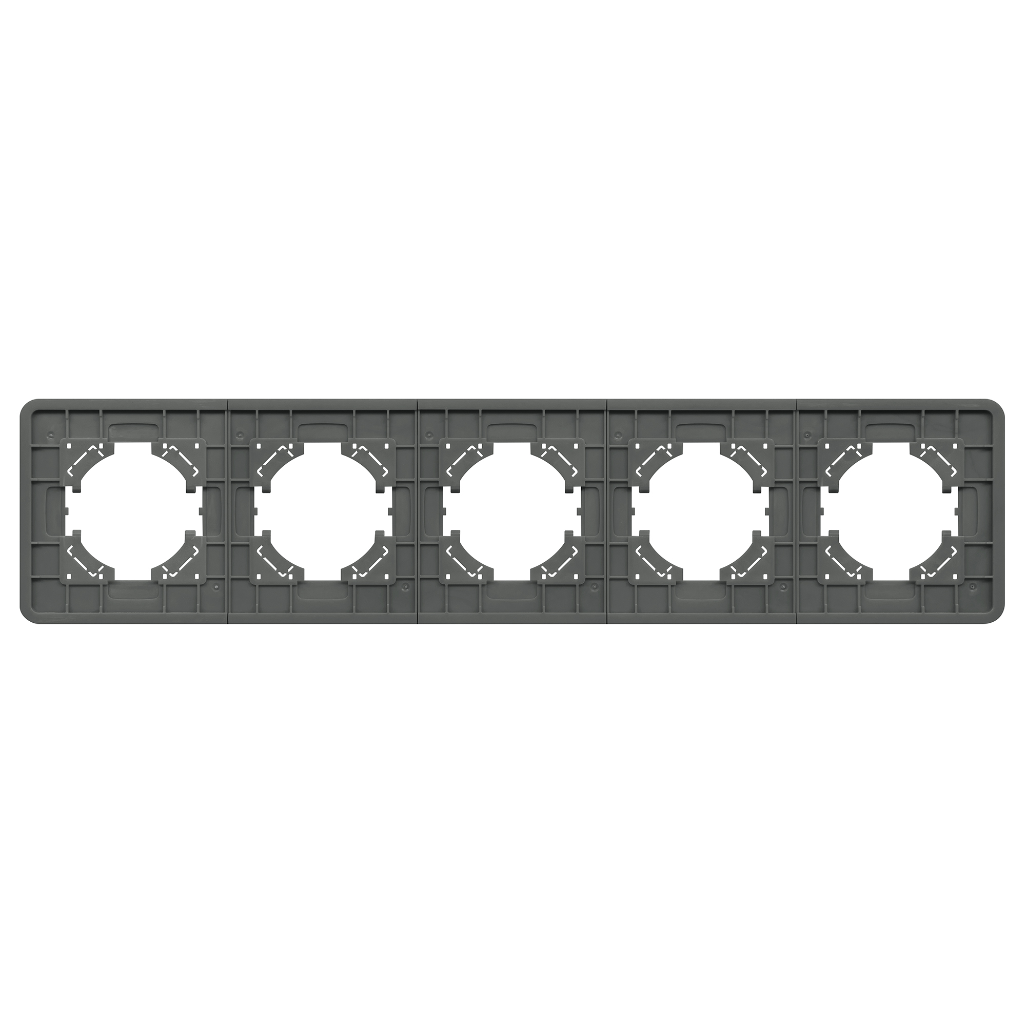 Рамка стеклянная на 5 постов, под встраиваемый механизм. Цвет - серый с Soft-Touch покрытием. Уровень герметичности IP20. Ориентация монтажа - горизонтальная (основным ориентиром служат посадочные выступы для накладки механизма).