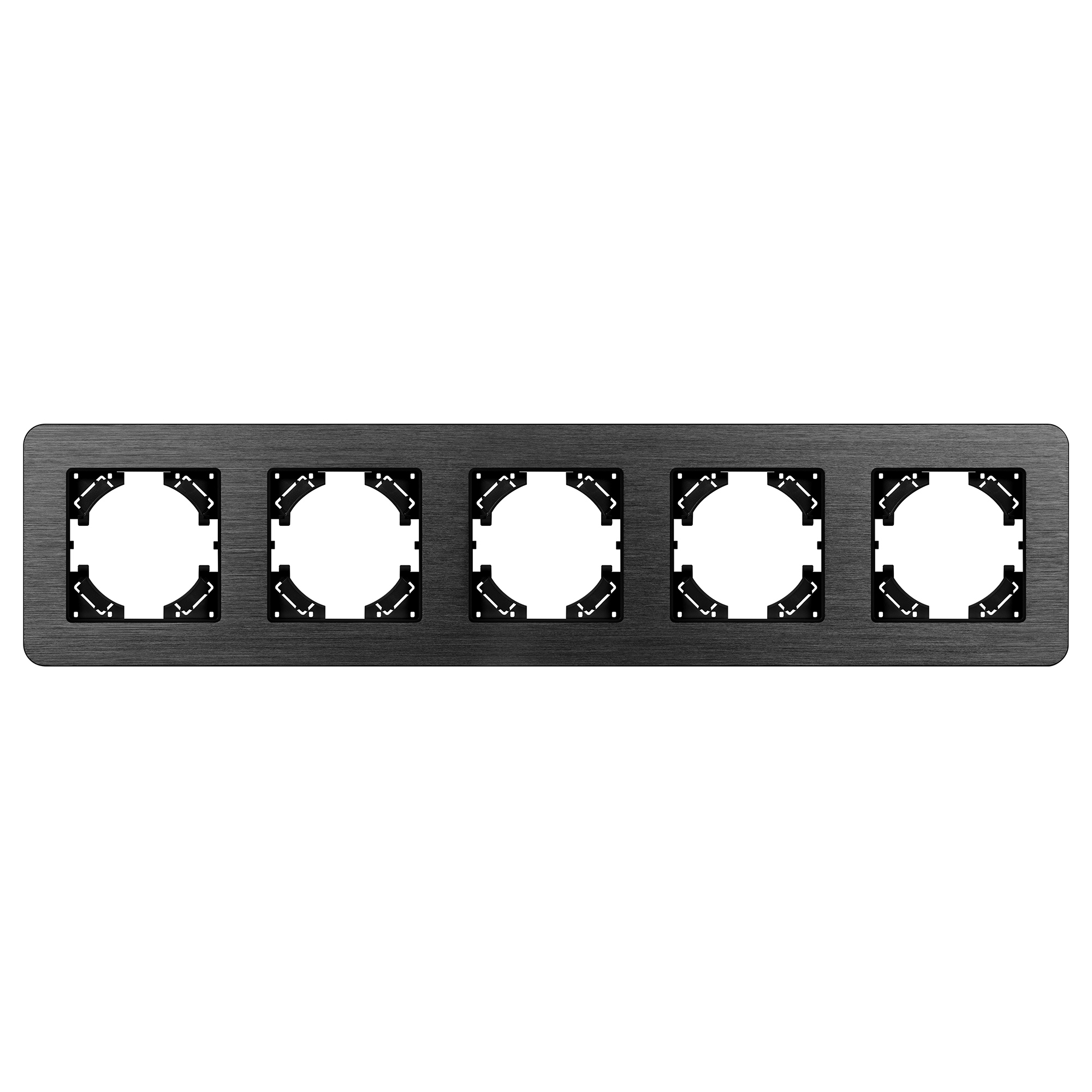 Рамка алюминиевая на 5 постов, под встраиваемый механизм. Цвет - черный. Уровень герметичности IP20. Ориентация монтажа - горизонтальная (основным ориентиром служат посадочные выступы для накладки механизма).