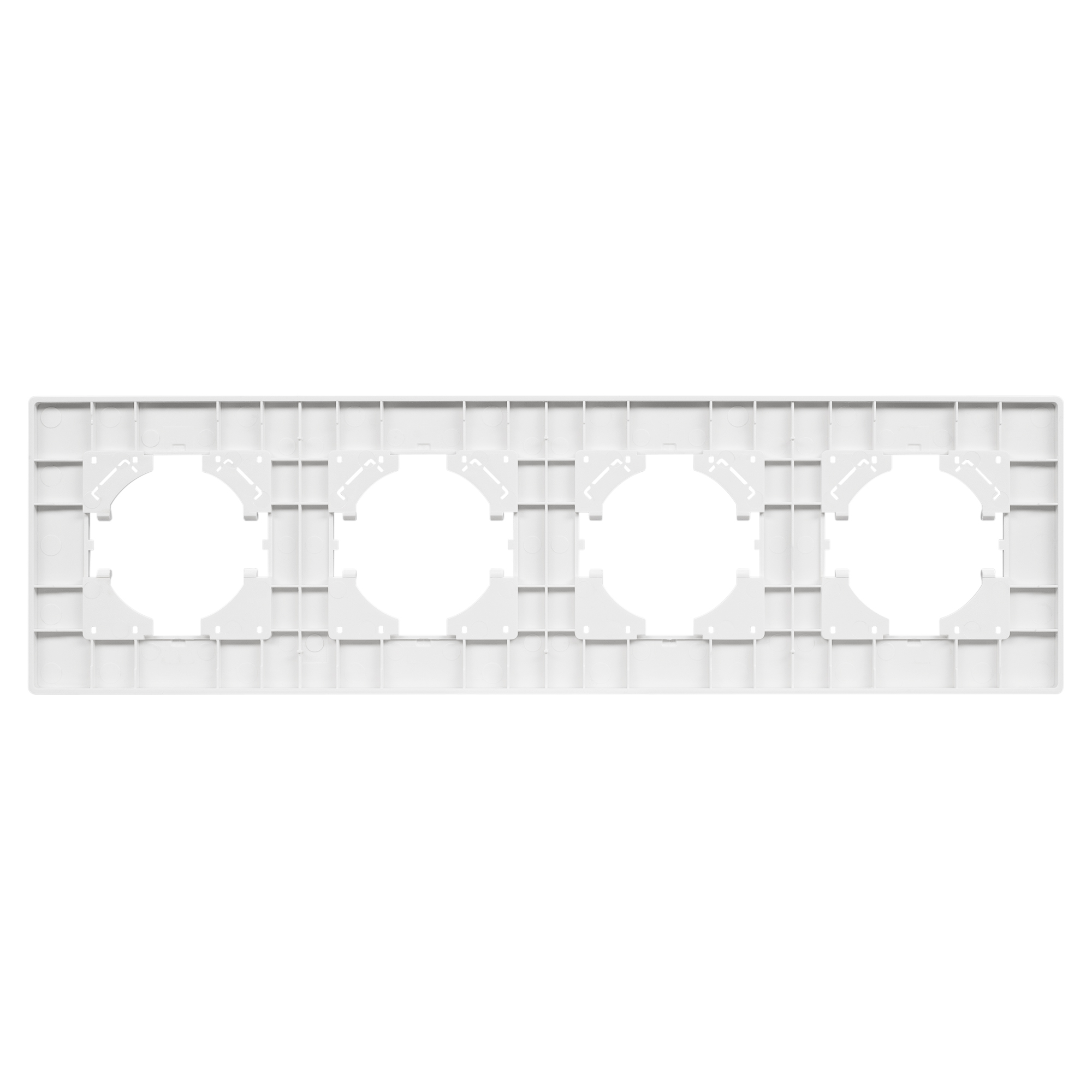 Рамка пластиковая на 4 поста, под встраиваемый механизм. Цвет - серый. Уровень герметичности IP20. Ориентация монтажа - горизонтальная (основным ориентиром служат посадочные выступы для накладки механизма).