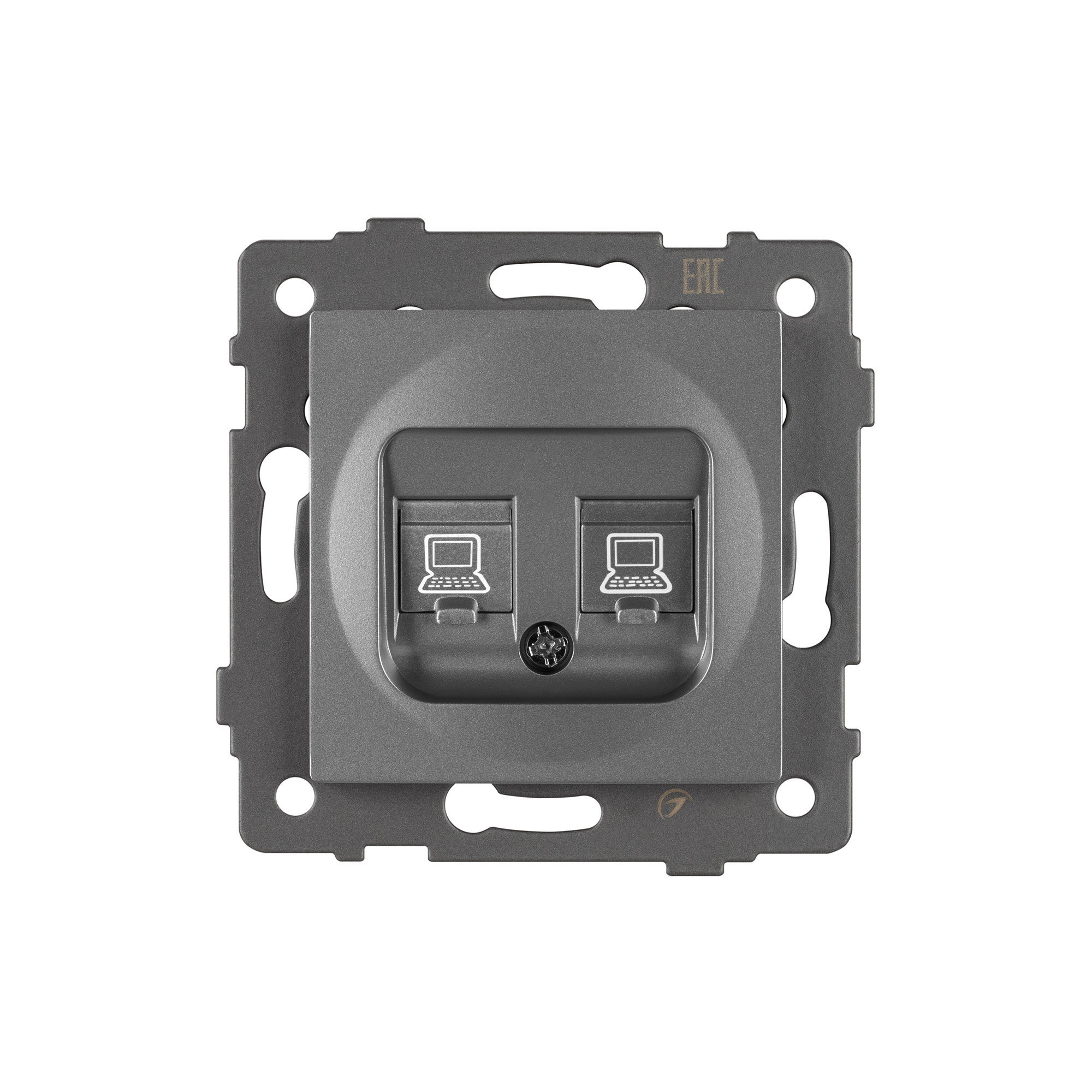 Механизм компьютерной розетки на 2 поста 6-й категории. Цвет - серый. Без фронтальной рамки. Уровень пылевлагозащиты IP20. Тип подключаемого разъема - RJ45. Розетка устанавливается в стандартный круглый подрозетник. Габаритные размеры: длина 71 мм, ширина 71 мм, высота 42 мм. Гарантийный срок 10 лет.