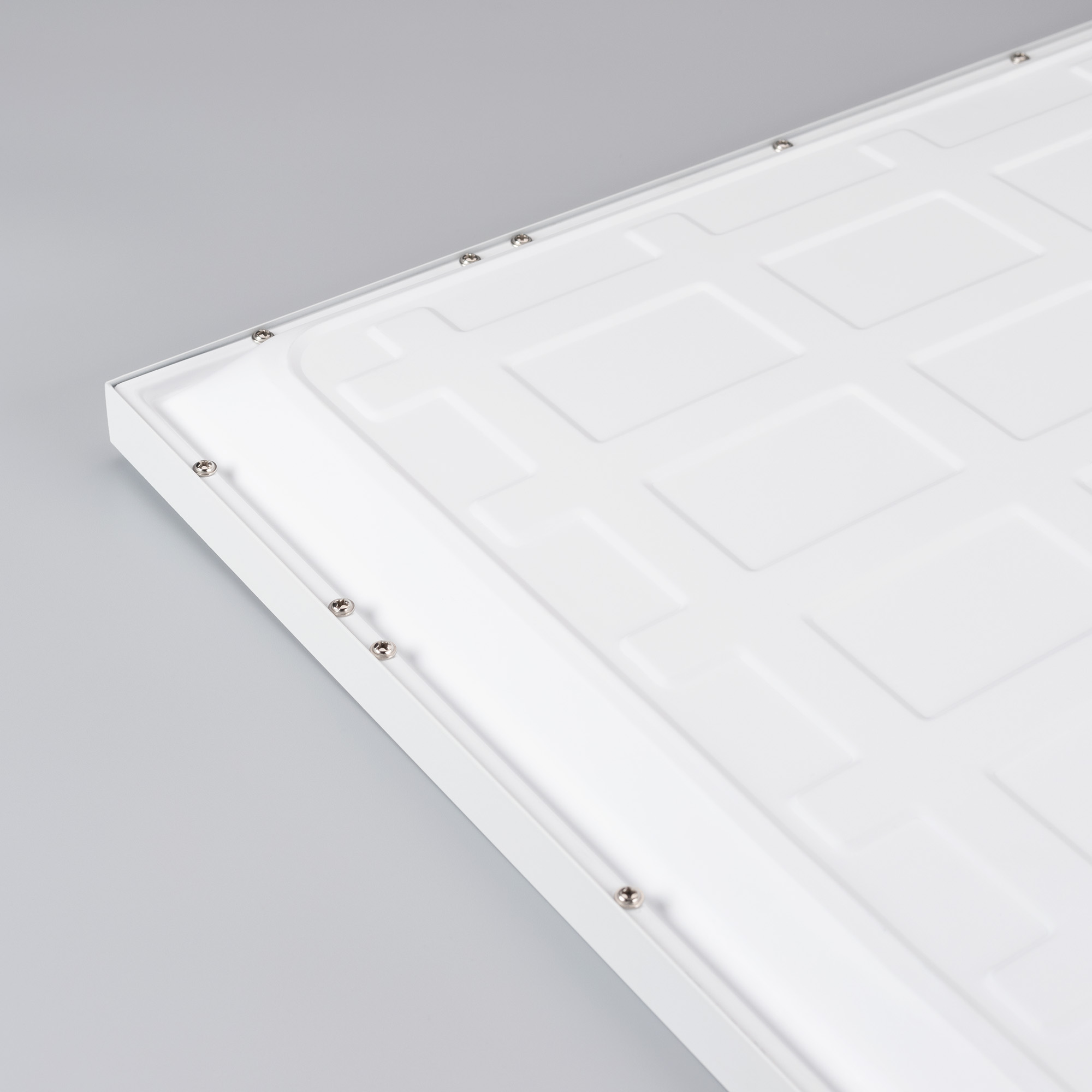 Светодиодная безрамочная панель TITAN-FRAMELESS мощностью 40 Вт с прямой засветкой (бэклит) и широким углом излучения 120 градусов предназначена для общего освещения офисных, коммерческих, торговых и других помещений. Высокий индекс цветопередачи удовлетворяет требованиям большинства проектов. Тонкий алюминиевый корпус не заметен при встройке в потолки Армстронг. Матовый экран обеспечивает равномерное распределение света без видимости точек светодиодов. Специальное покрытие рассеивателя из полистирола не пожелтеет со временем и сохранит идеальный внешний вид панели. Корпус имеет защиту от пыли по стандарту IP40 и подходит для установки внутри помещений, где отсутствует контакт с водой. Панель устанавливается встраиваемым способом в ячейку потолка Армстронг размером 600х600 мм. Поставляется в комплекте с драйвером, что дает возможность безопасно и быстро подключать светильник напрямую к сети 230В. Низкая пульсация обеспечивает комфортное освещение без мерцания.